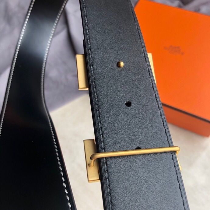 Hermes 3.8cm Reversible leather belt with stainless steel H buckle