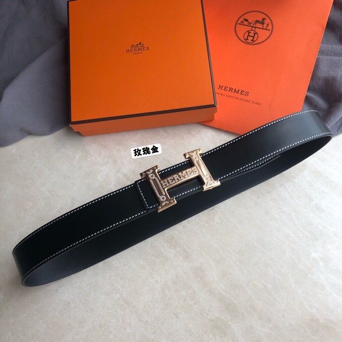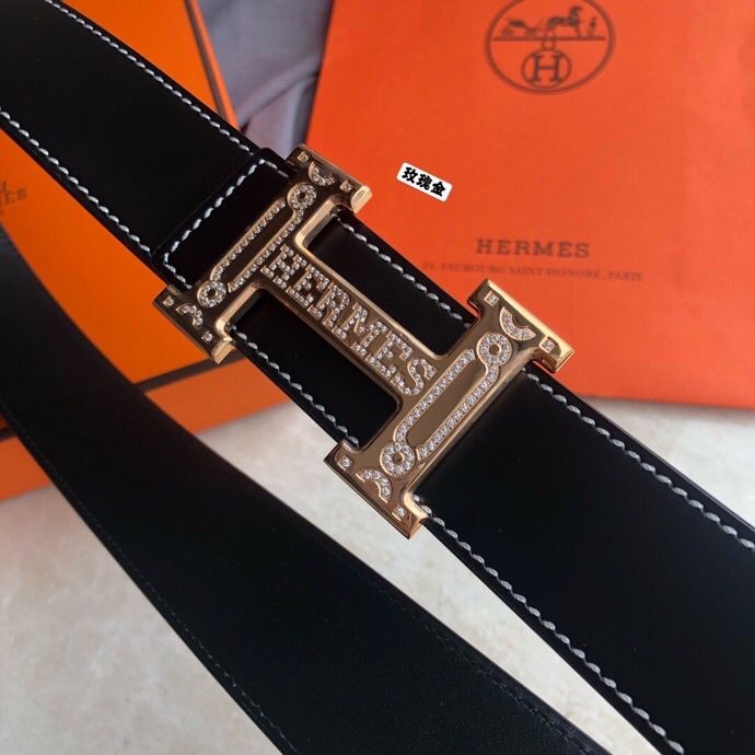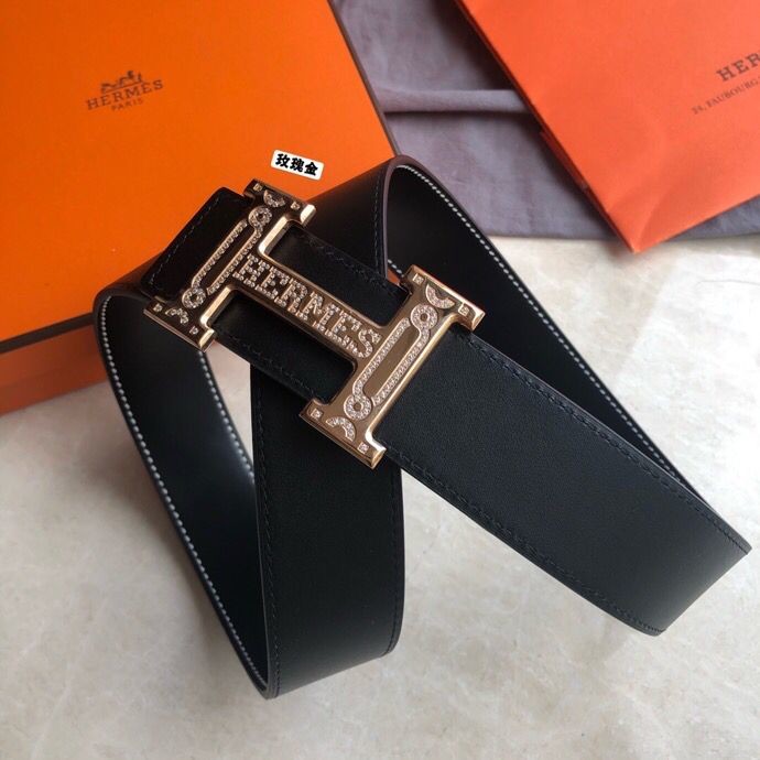 Hermes Stainless Steel Full Rhinestone Reversible Leather Men s 3.8cm Belt