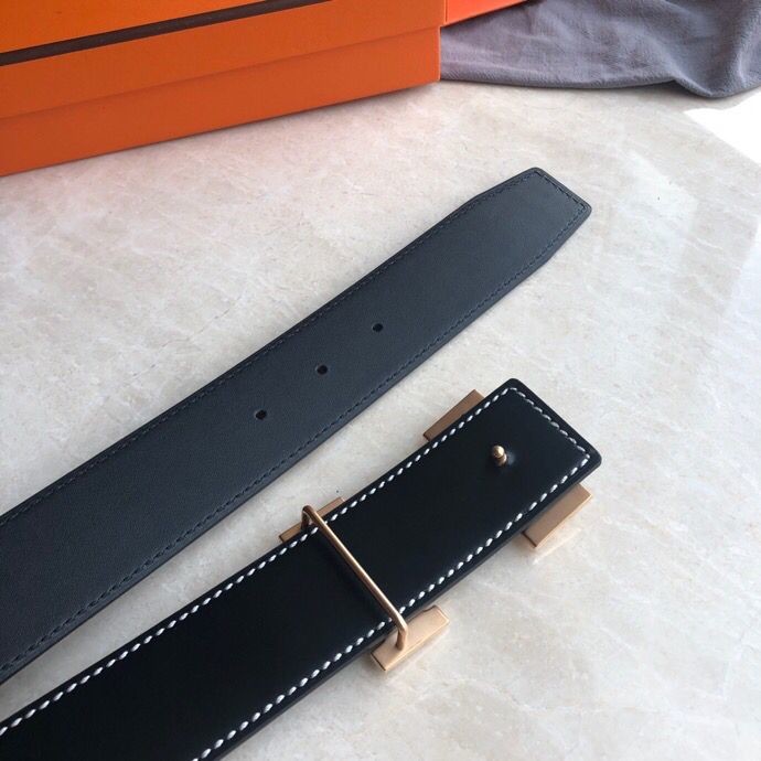 Hermes 3.8cm Reversible leather belt with stainless steel H buckle