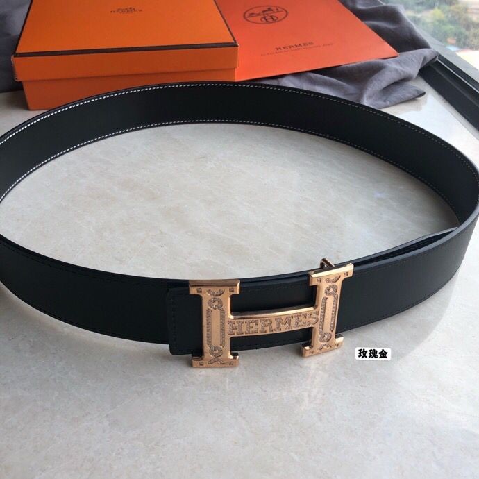 Hermes Stainless steel H pattern metal buckle & cowhide embossed crocodile pattern 38mm belt