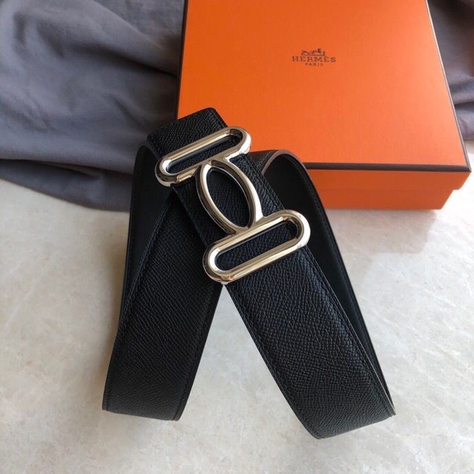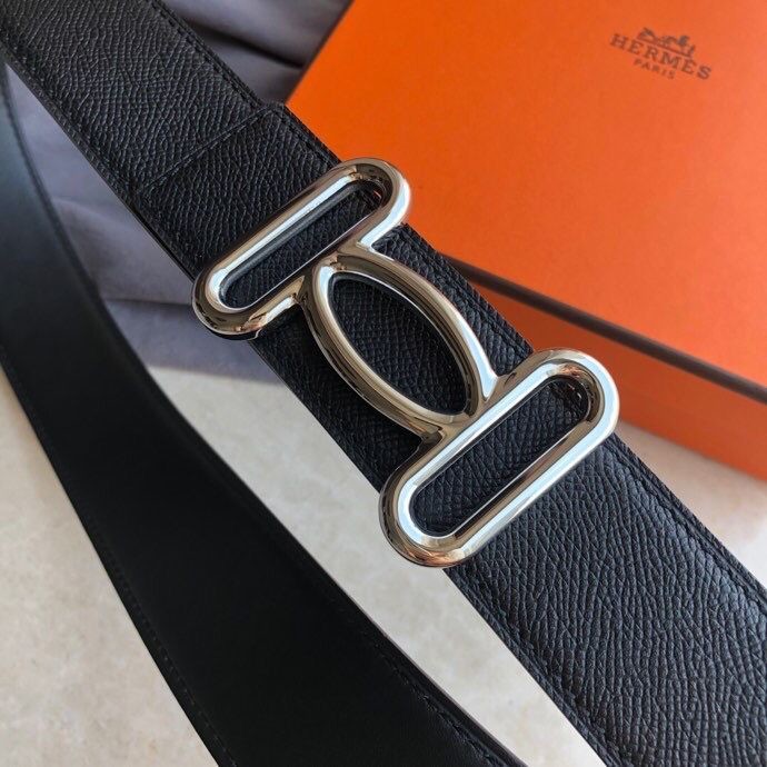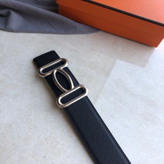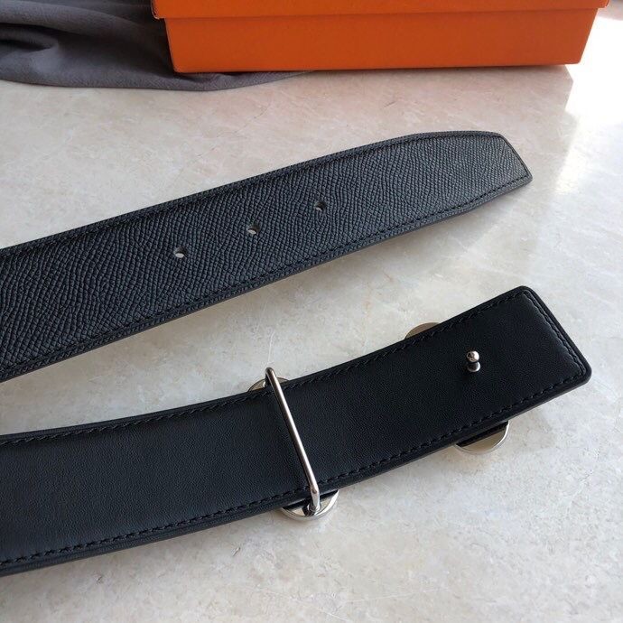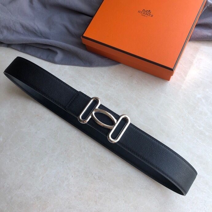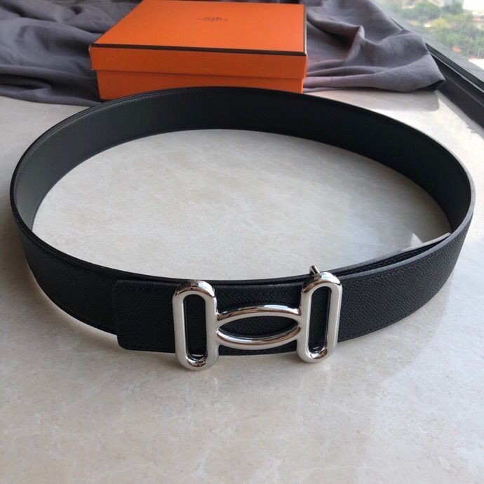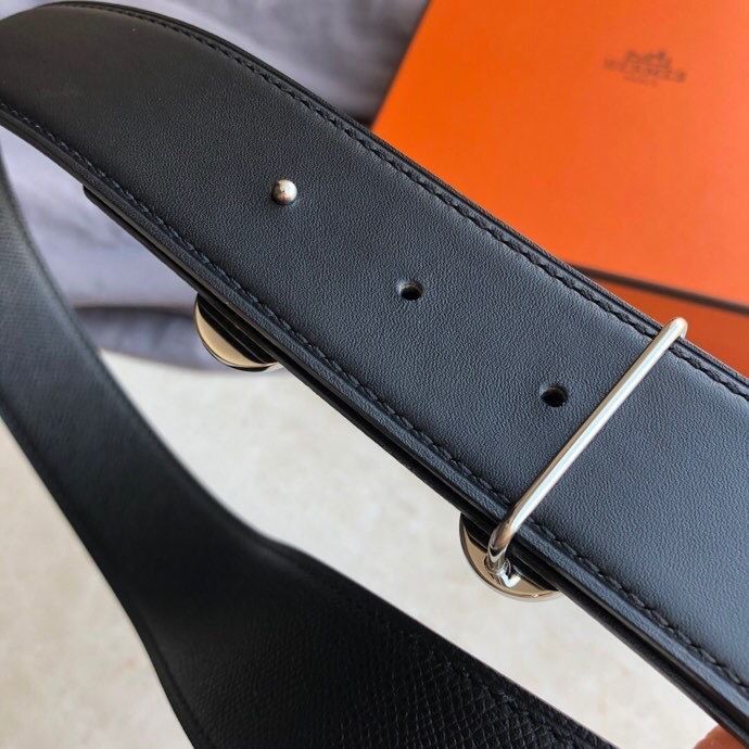 Hermes Stainless steel hollow hanging buckle leather men s 3.8cm belt