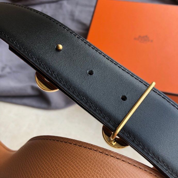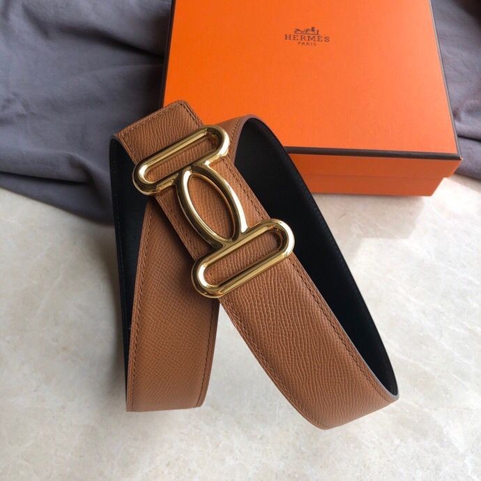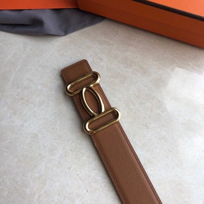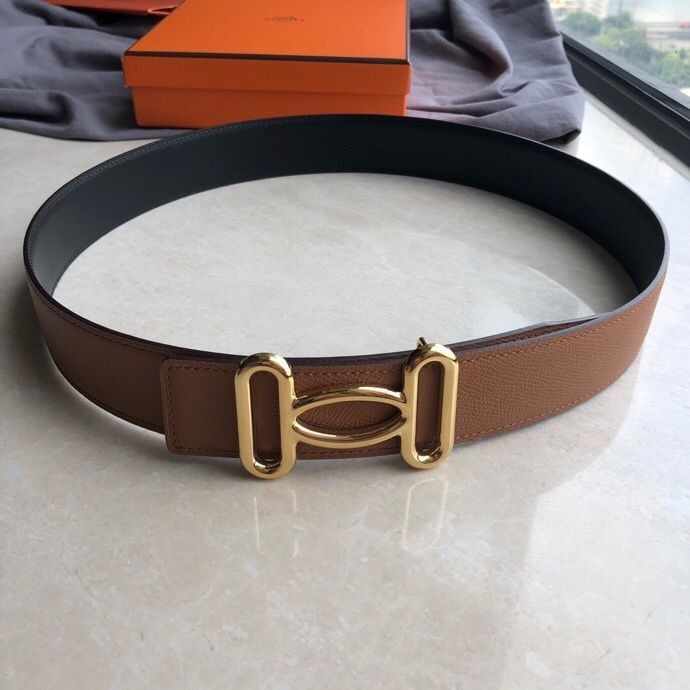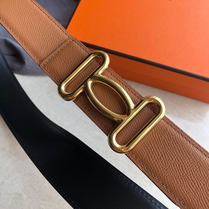 Hermes Stainless steel hollow hanging buckle leather men s 3.8cm belt
