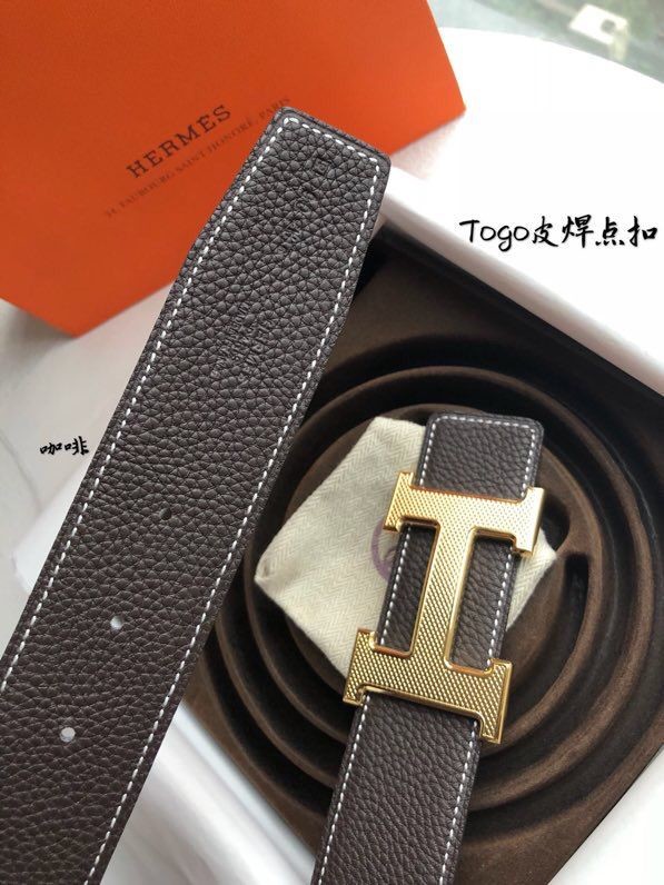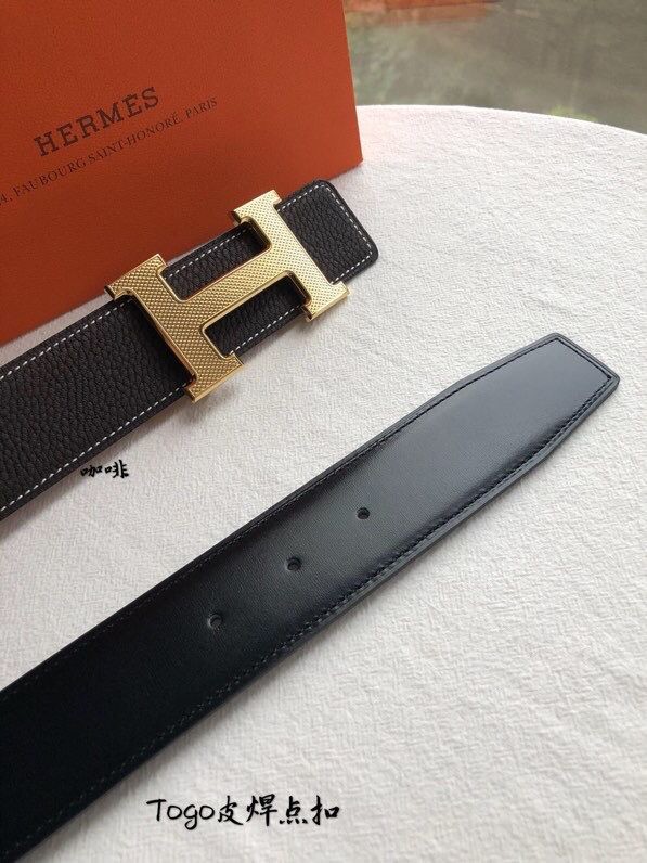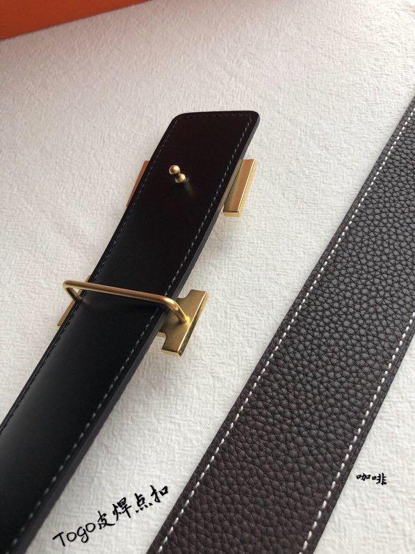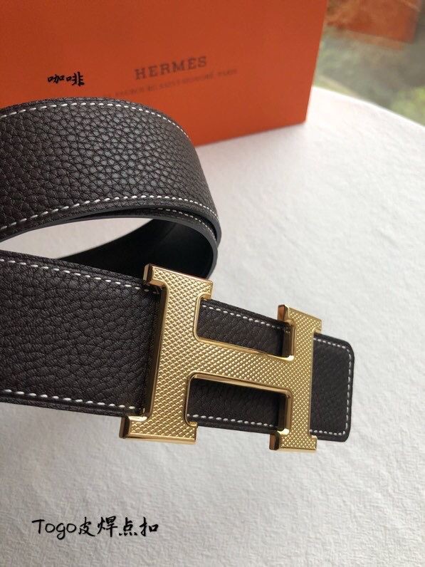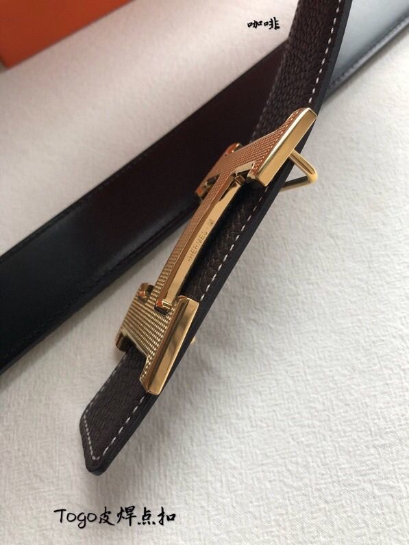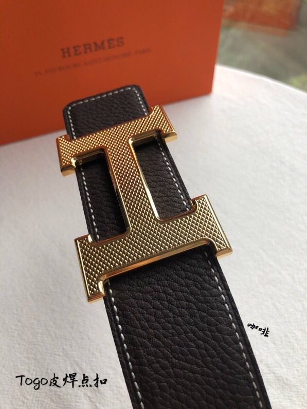 Hermes Stainless steel H pattern metal buckle & cowhide embossed crocodile pattern 38mm belt