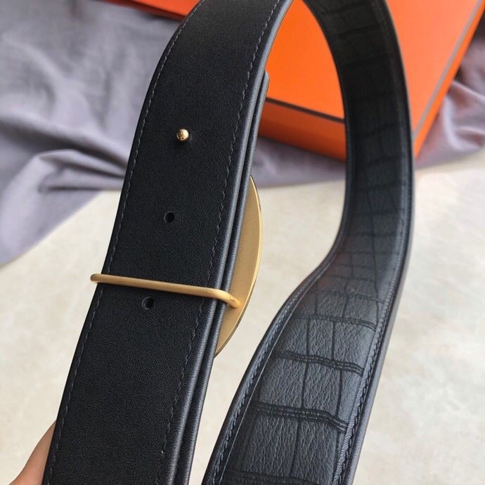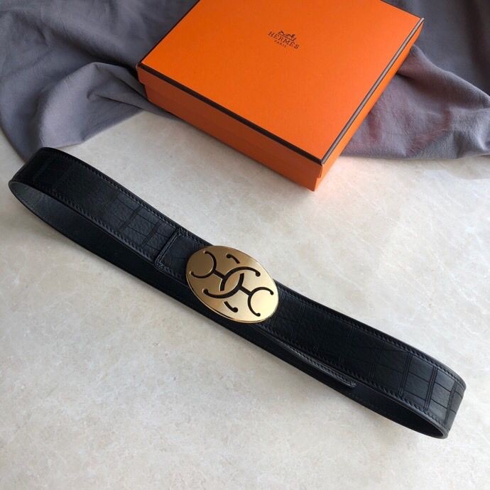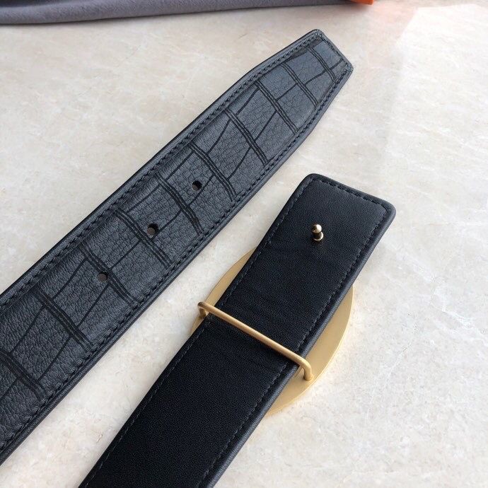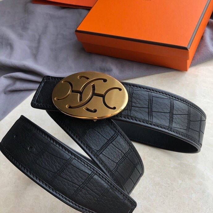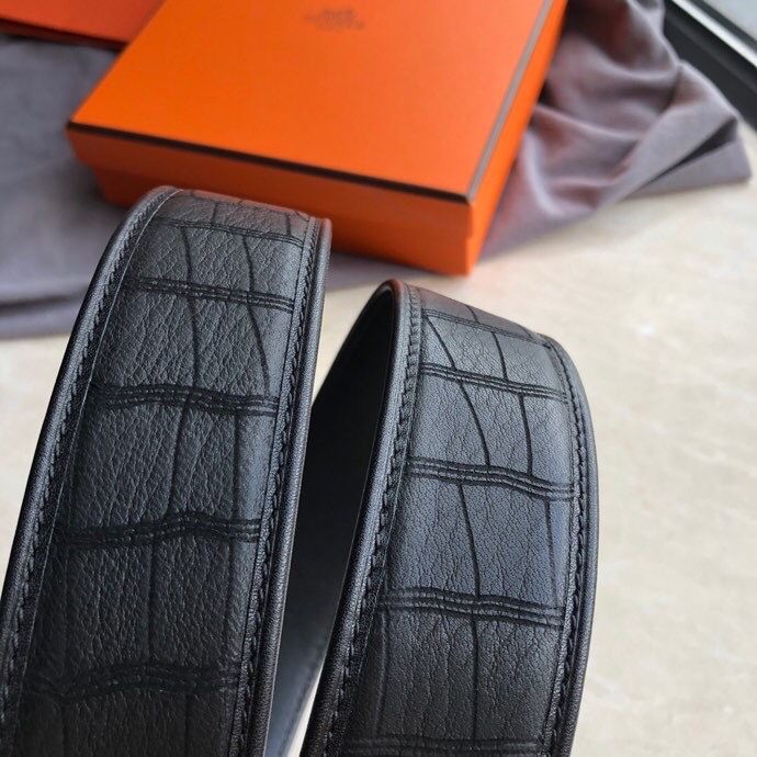 Hermes Stainless steel H pattern metal buckle & cowhide embossed crocodile pattern 38mm belt