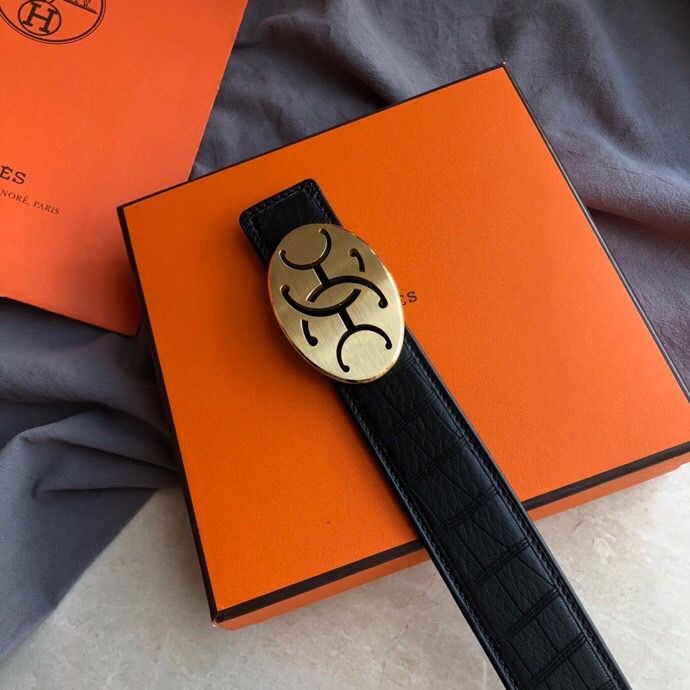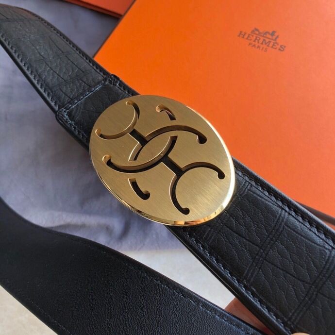 Hermes Stainless steel hollow hanging buckle deerskin men s 3.8cm belt