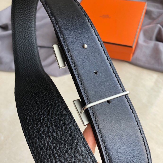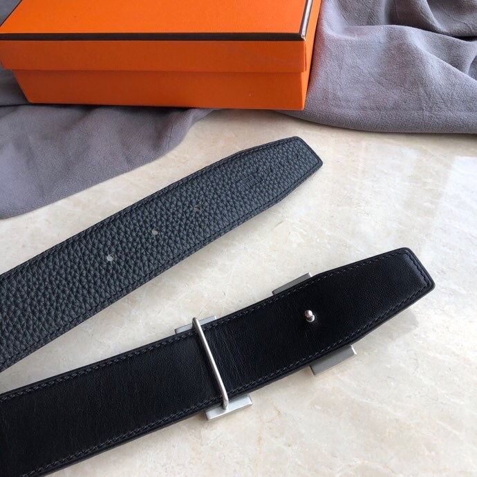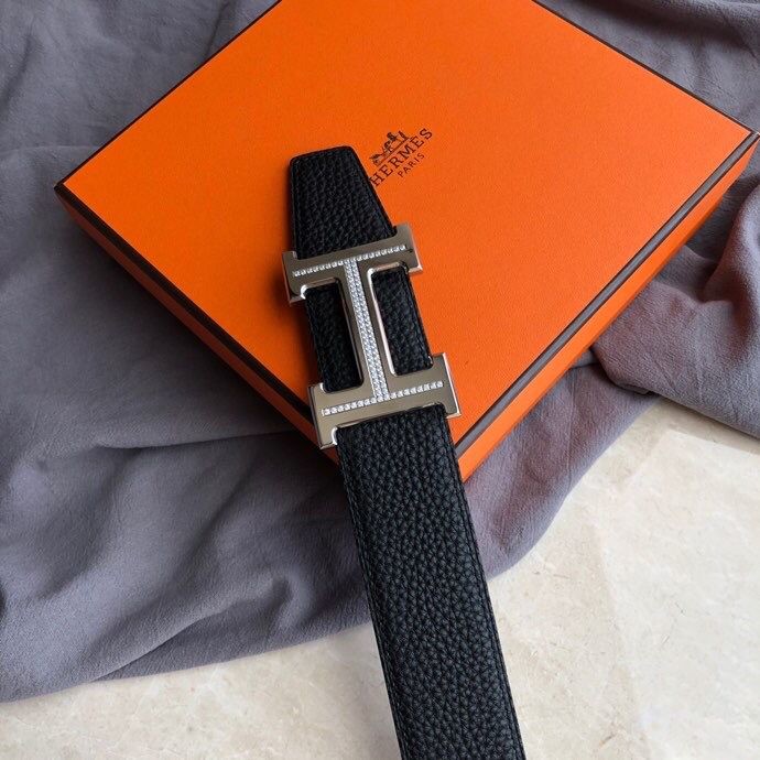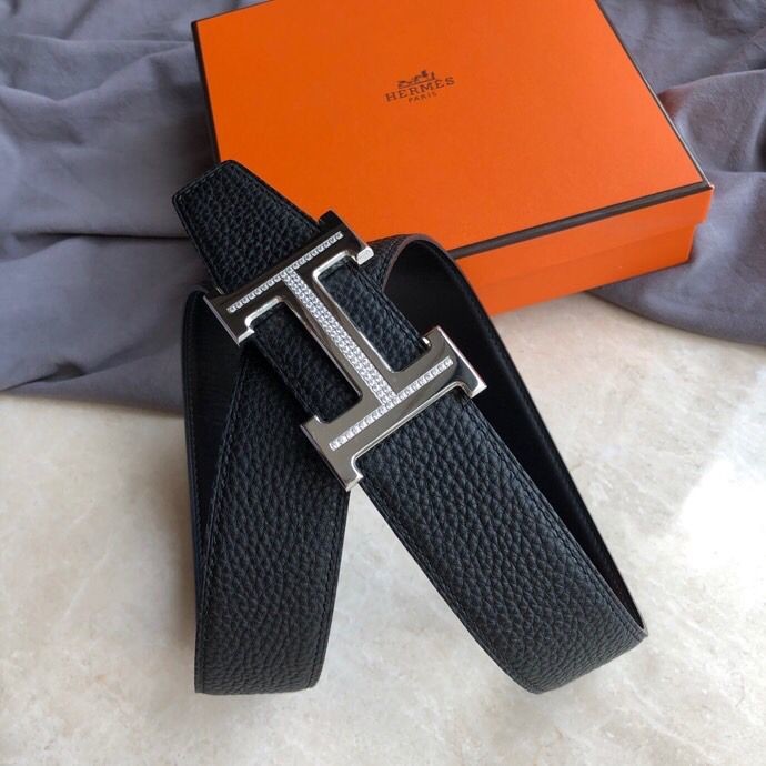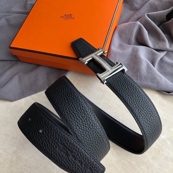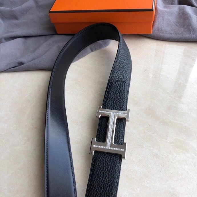 Hermes Stainless steel H single-row diamond bottom leather men s 3.8cm belt