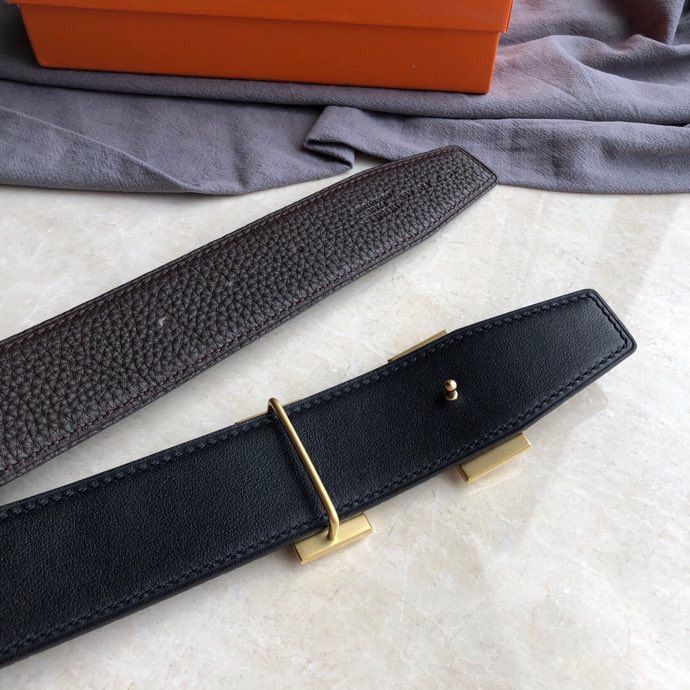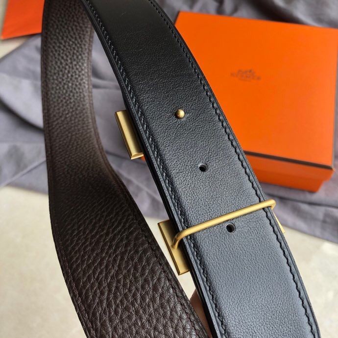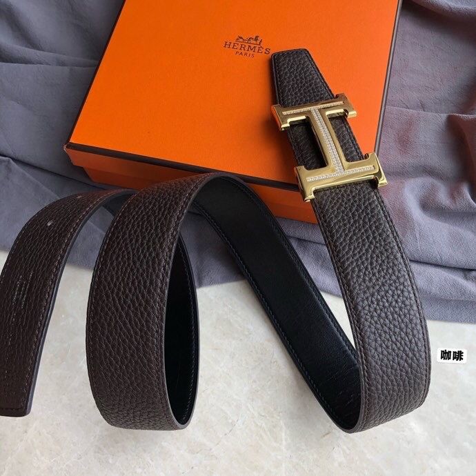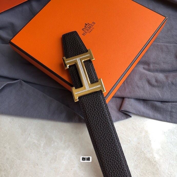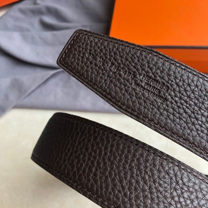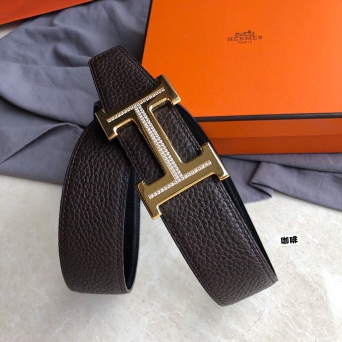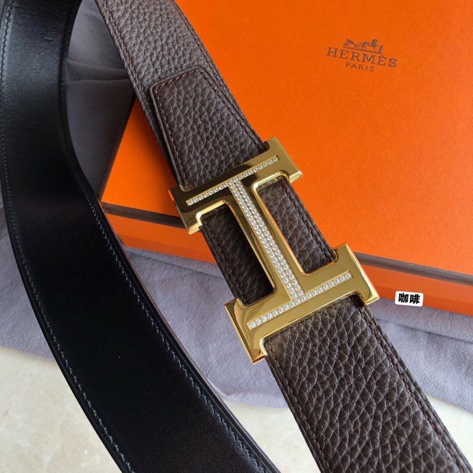 Hermes Stainless steel H single-row diamond bottom leather men s 3.8cm belt