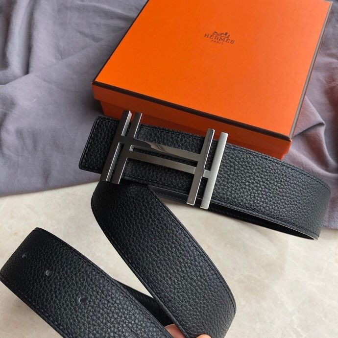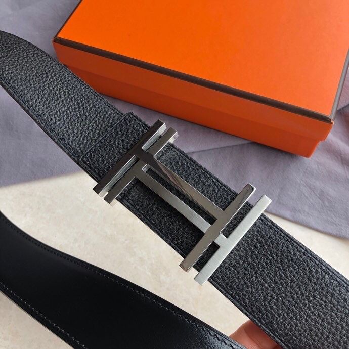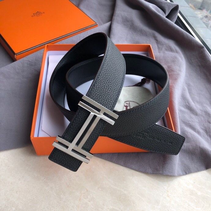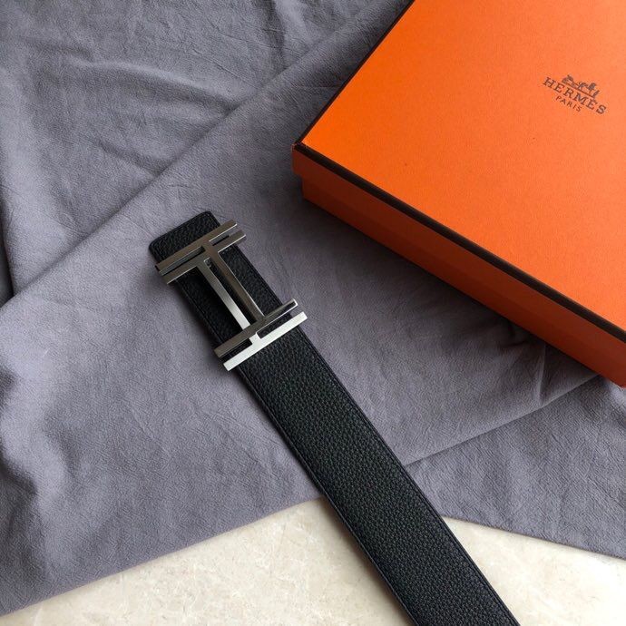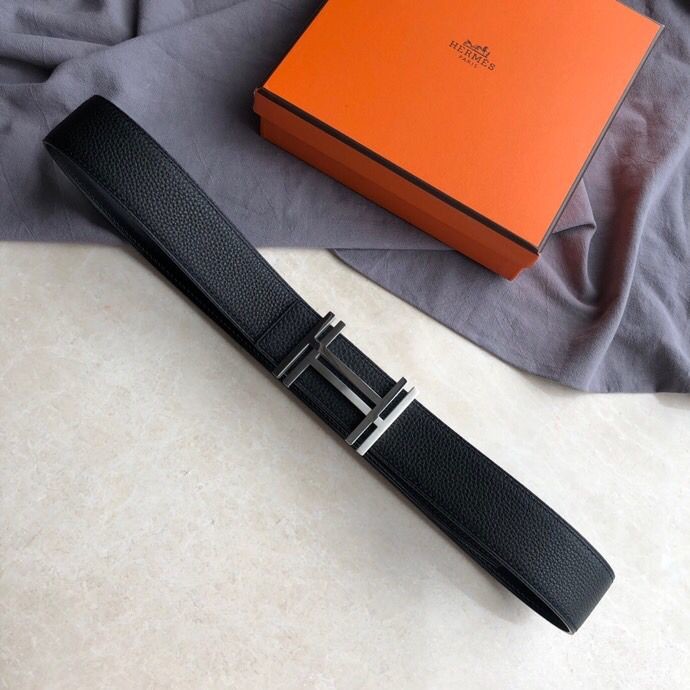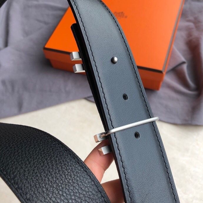 Hermes Men s 3.8cm stainless steel double buckle leather belt
