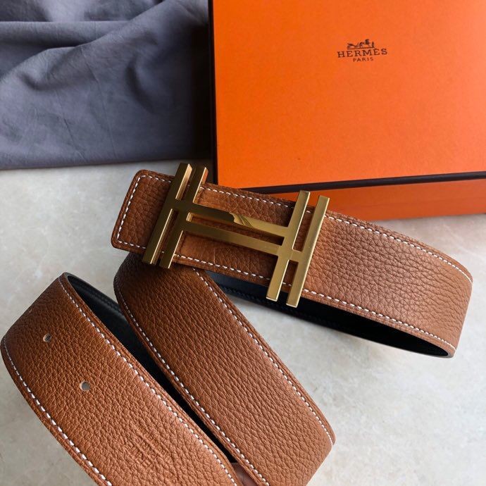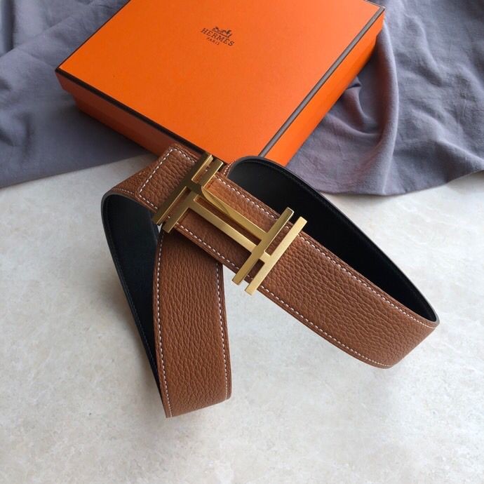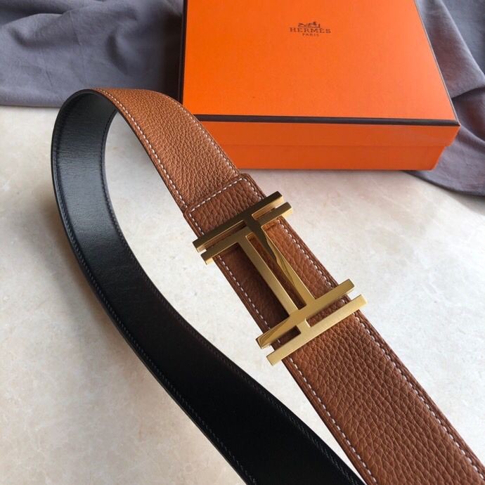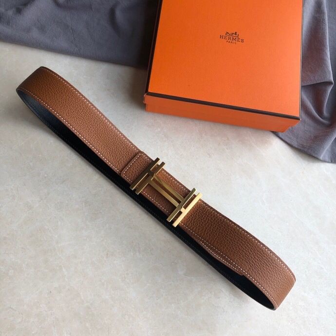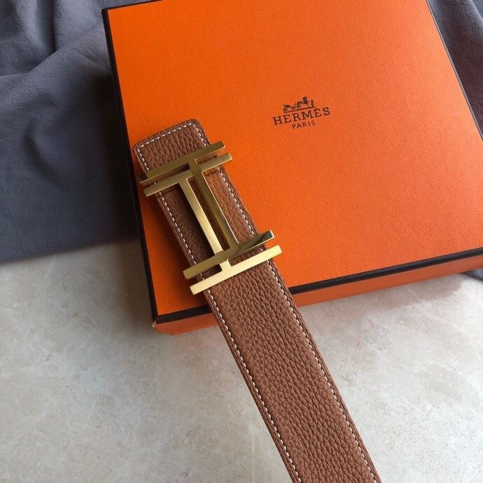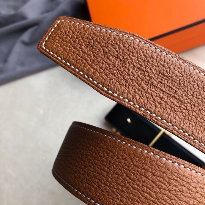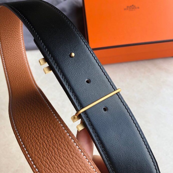 Hermes Men s 3.8cm stainless steel double buckle leather belt