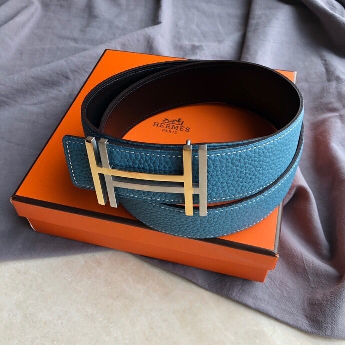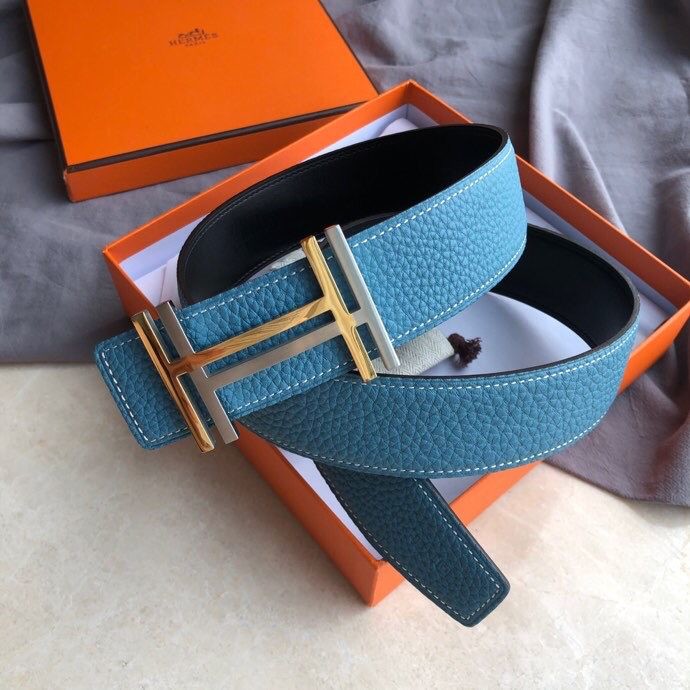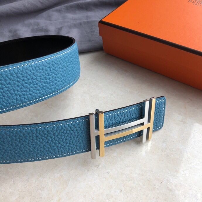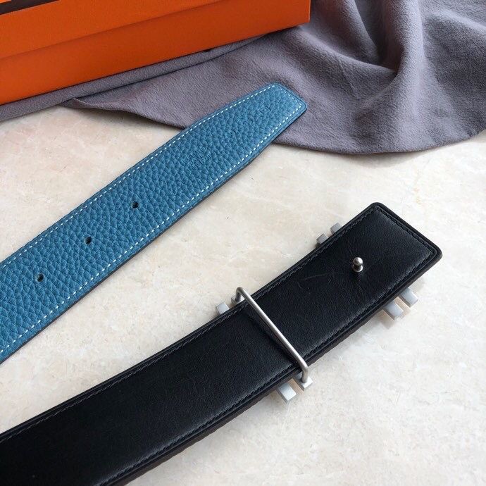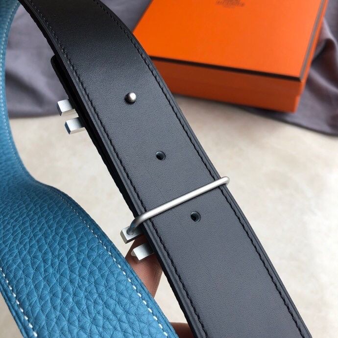 Hermes Men s 3.8cm stainless steel double buckle leather belt