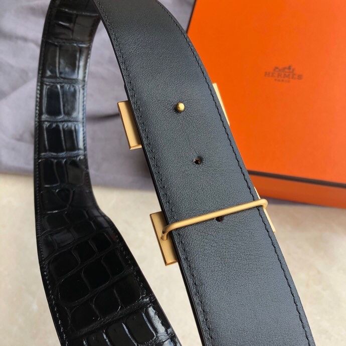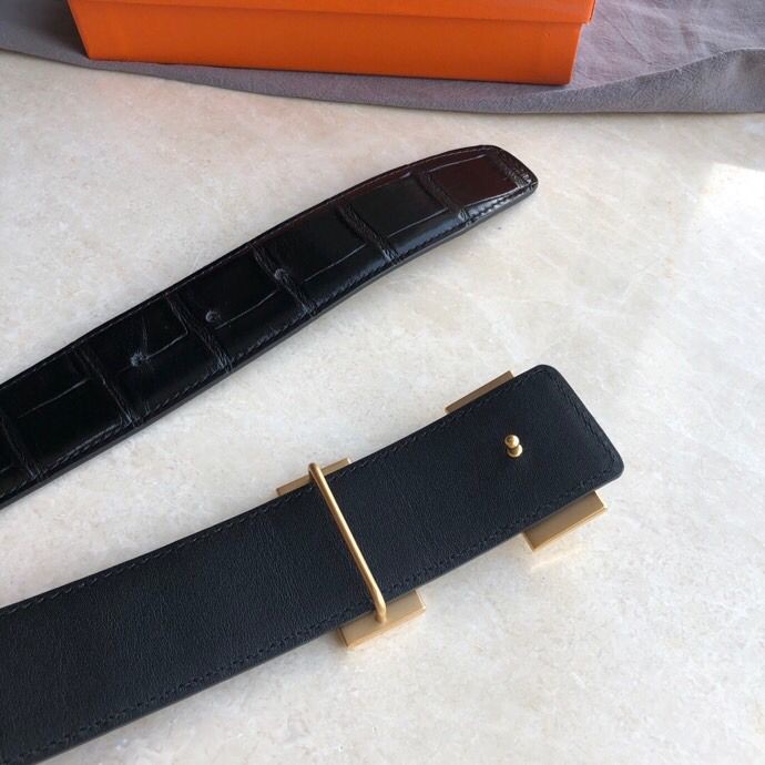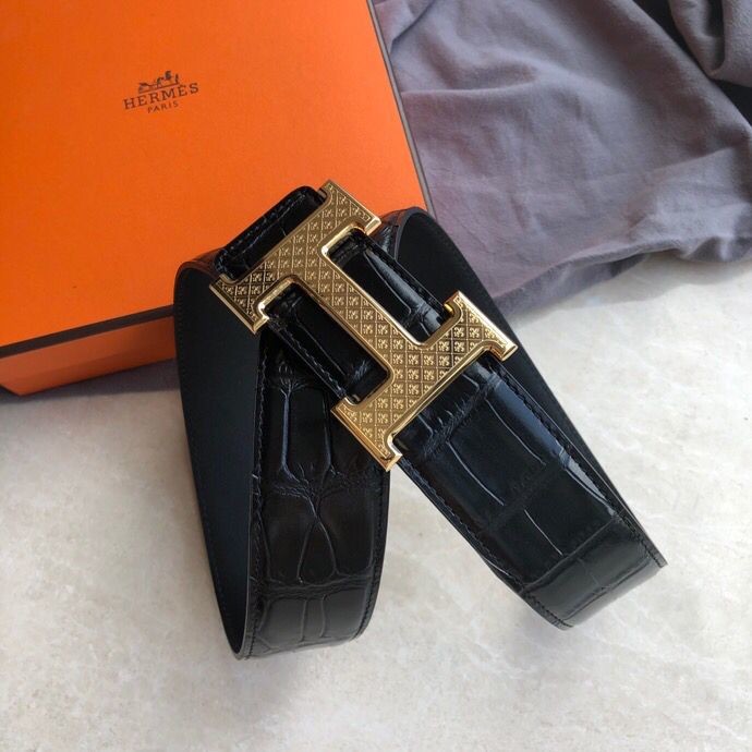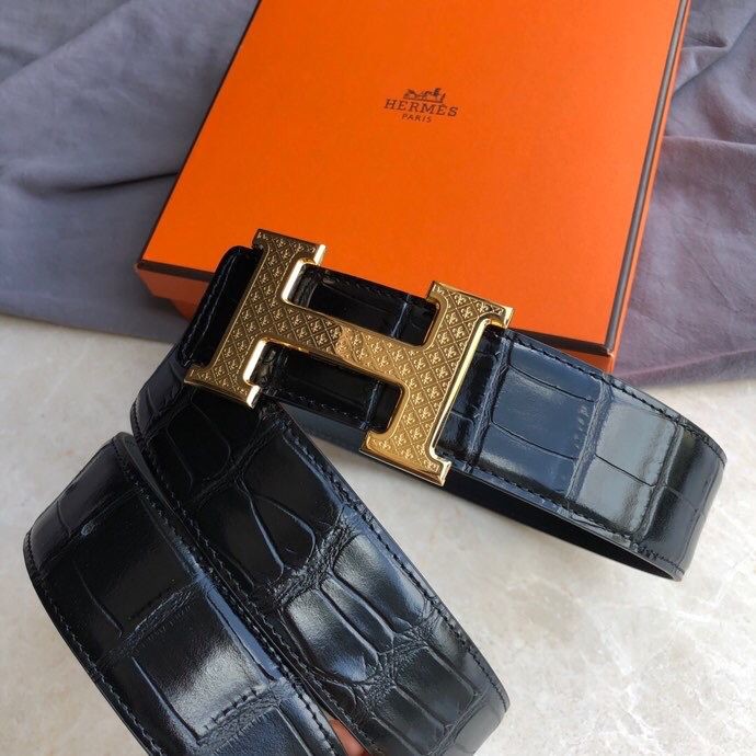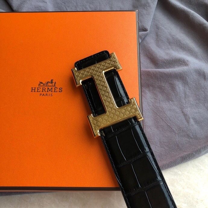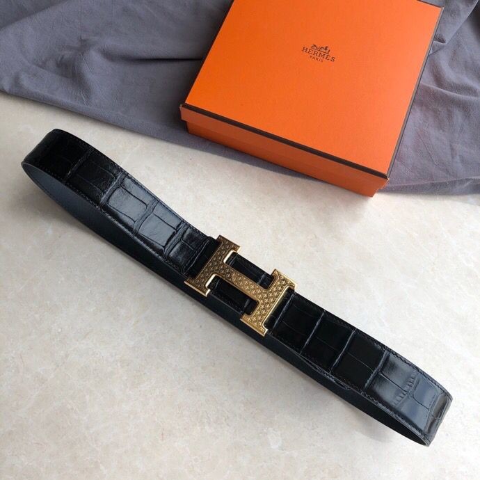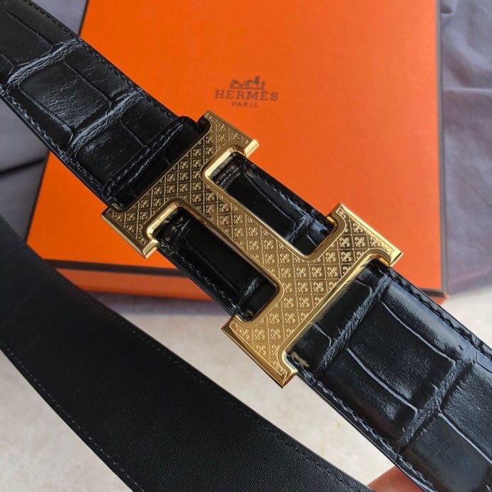 Hermes Stainless steel H pattern metal buckle & cowhide embossed crocodile pattern 38mm