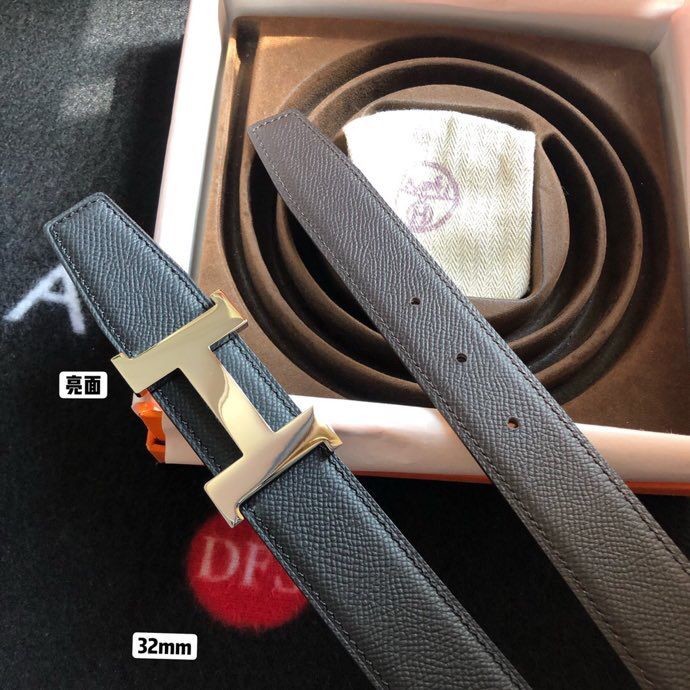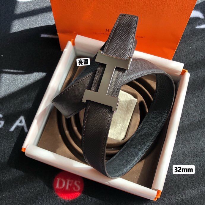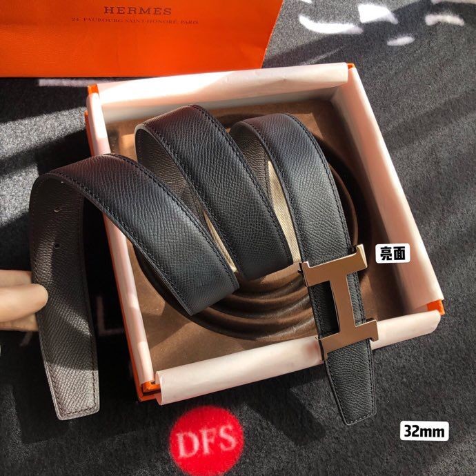 Hermes Stainless steel four-corner shiny metal buckle & Reversible belt 32mm