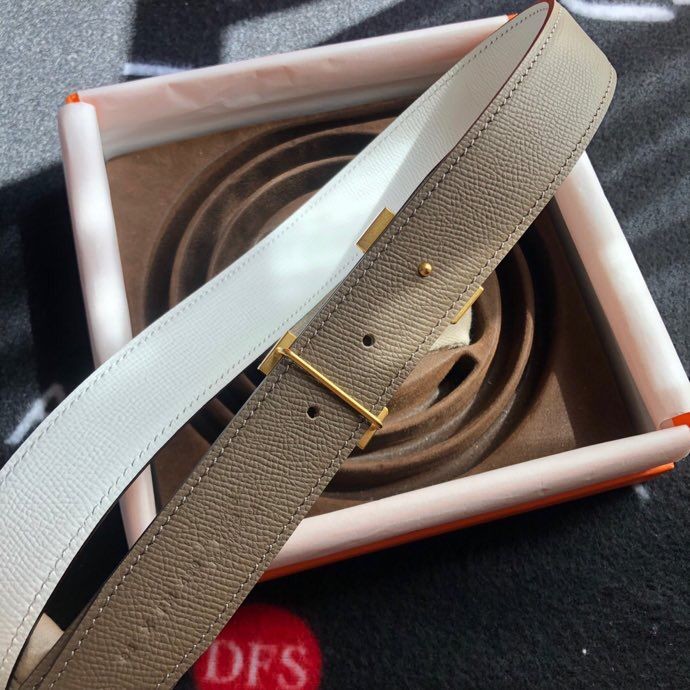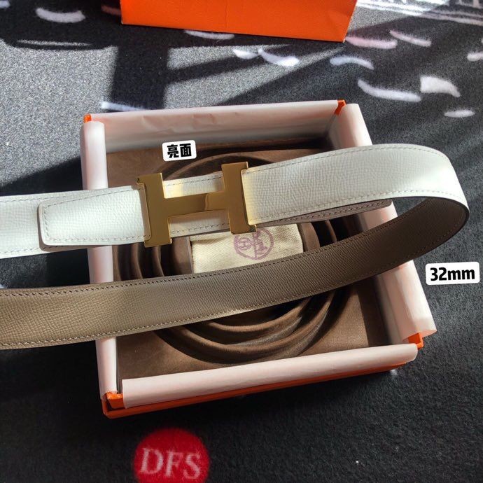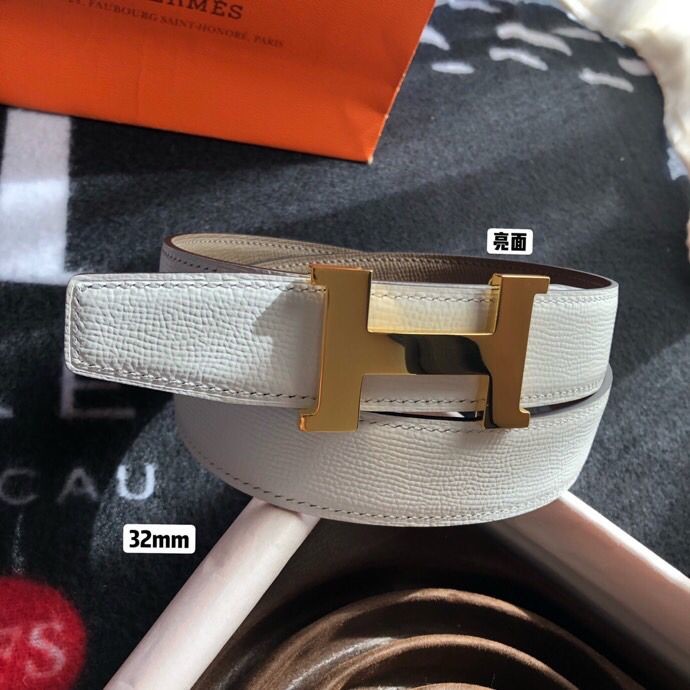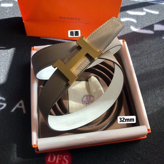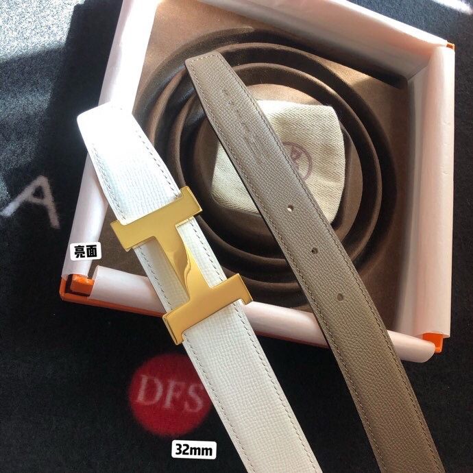 Hermes Stainless steel four-corner shiny metal buckle & Reversible belt 32mm