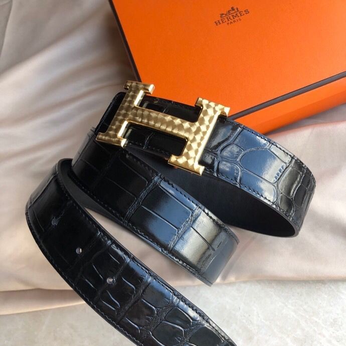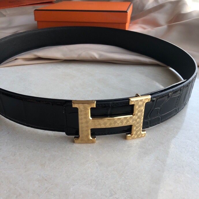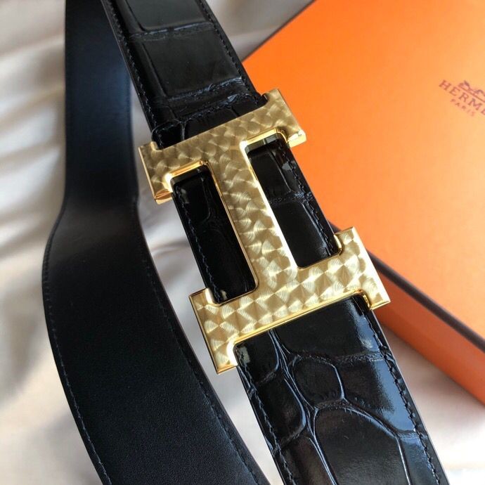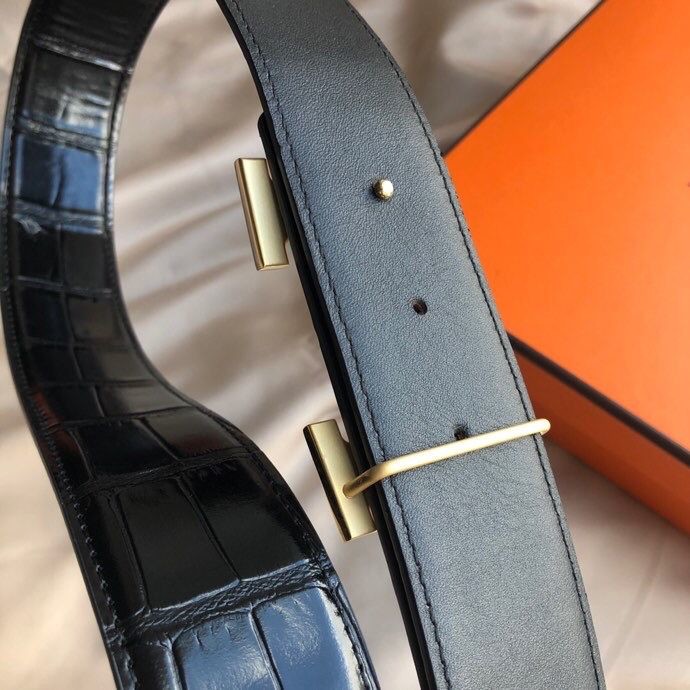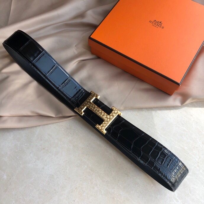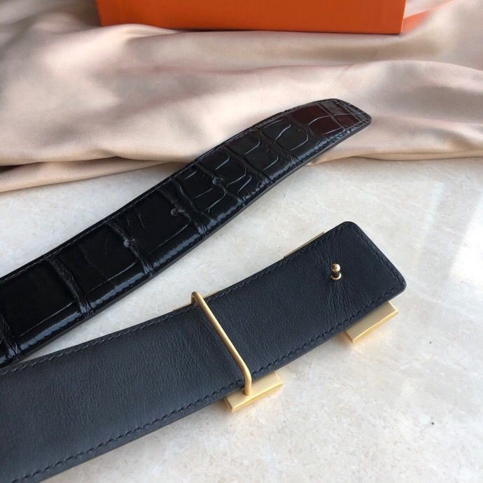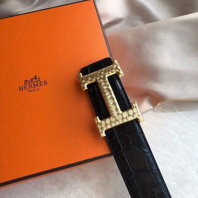 Hermes Stainless steel H pattern metal buckle & cowhide embossed crocodile pattern 38mm belt