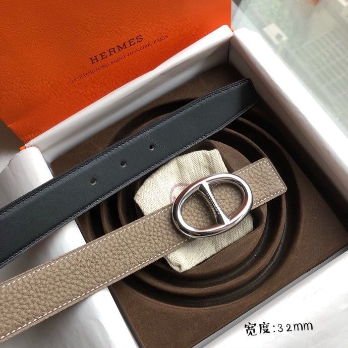 Hermes Golden silver classic metal buckle belt 32mm