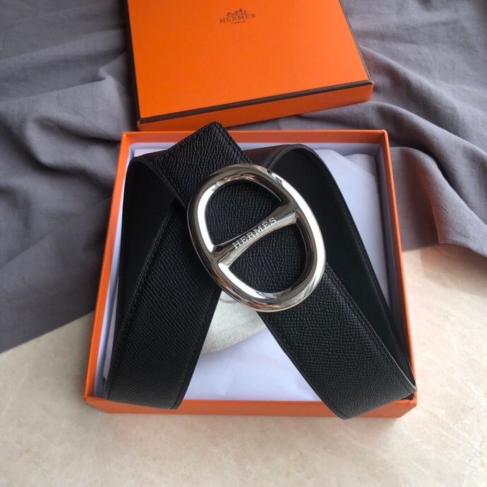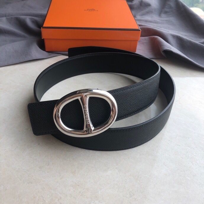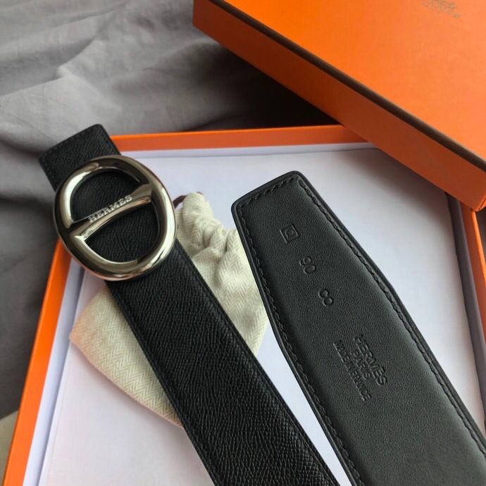 Hermes Stainless steel buckle leather men s 3.8cm belt