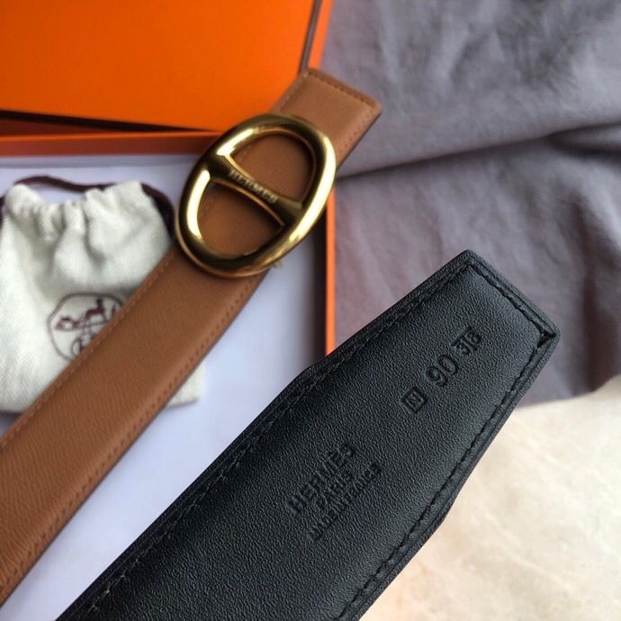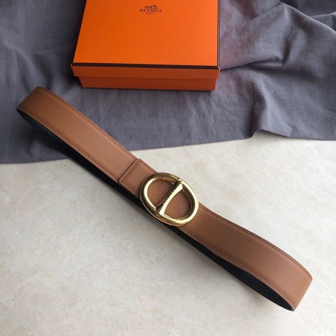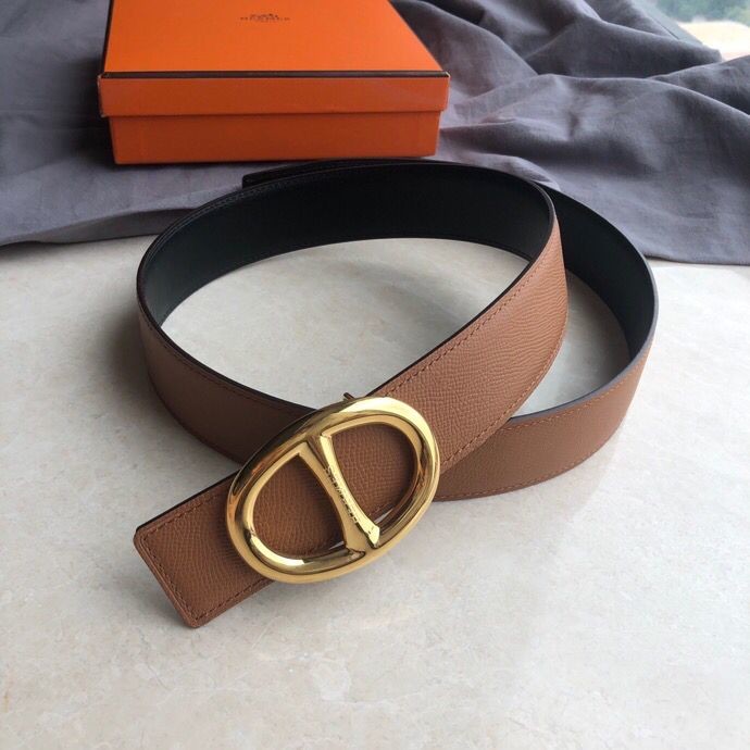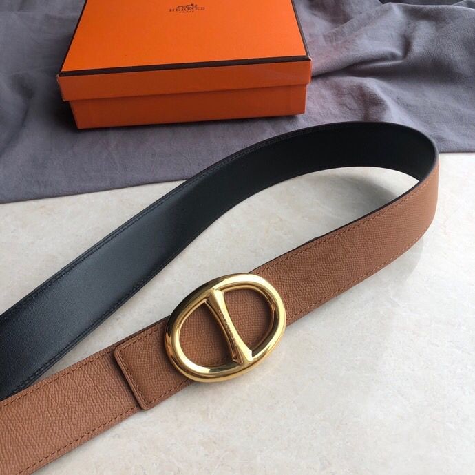 Hermes Stainless steel buckle leather men s 3.8cm belt