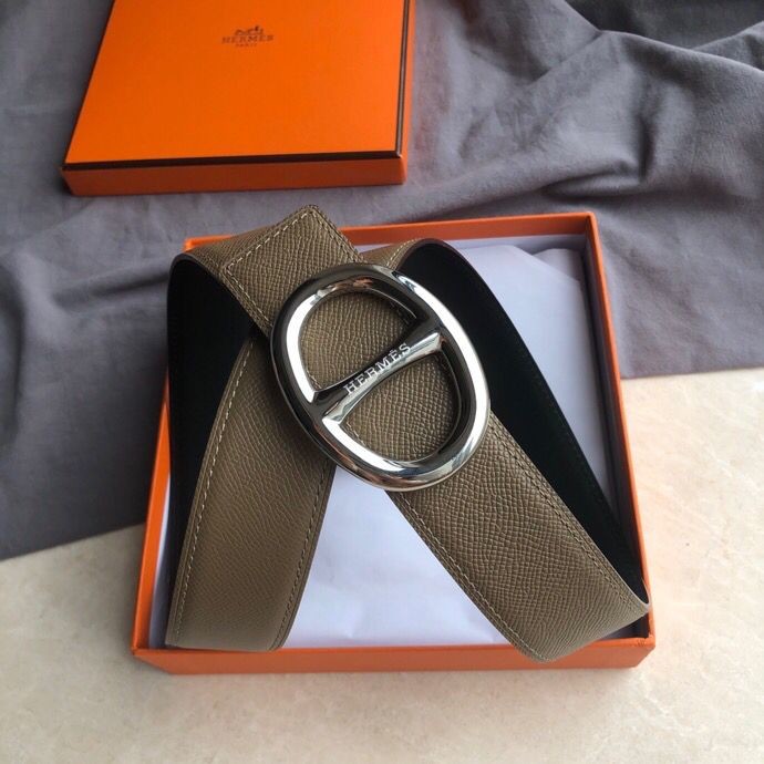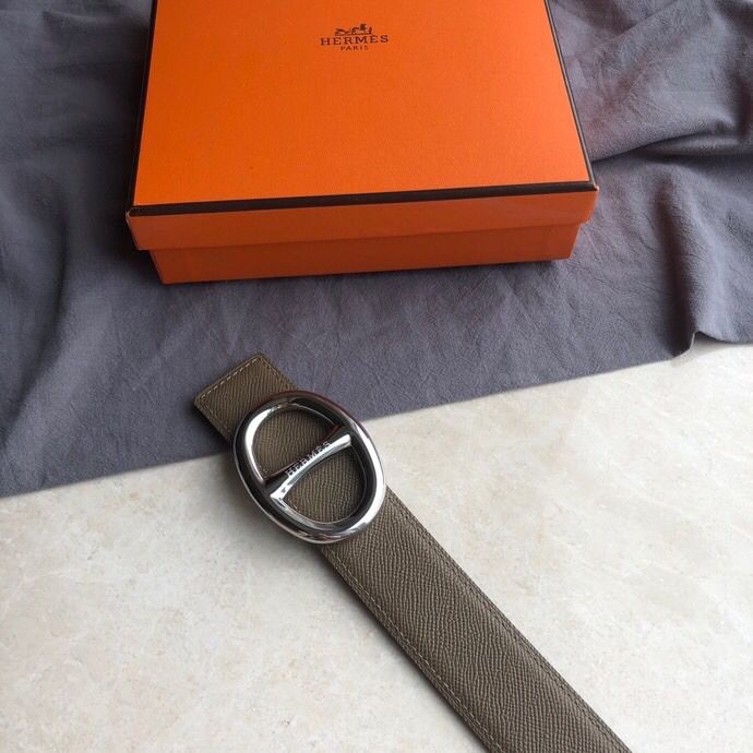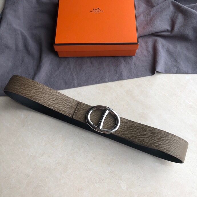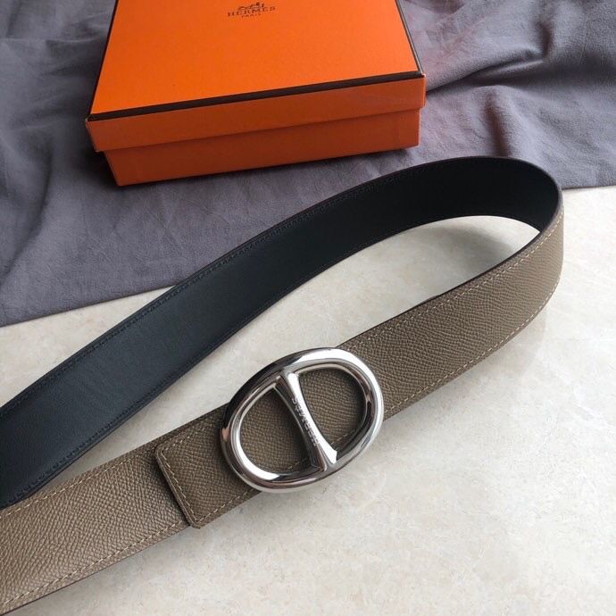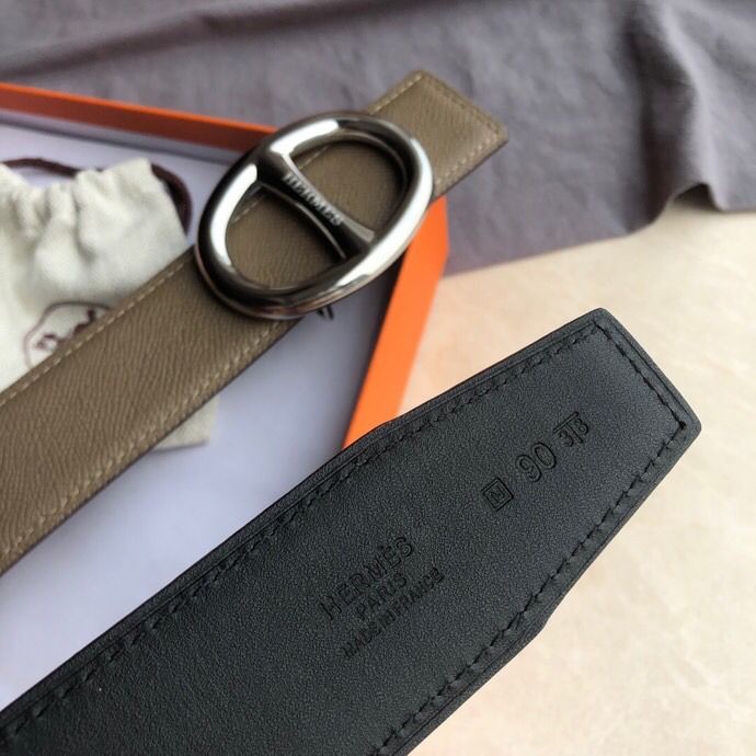 Hermes Stainless steel buckle leather men s 3.8cm belt