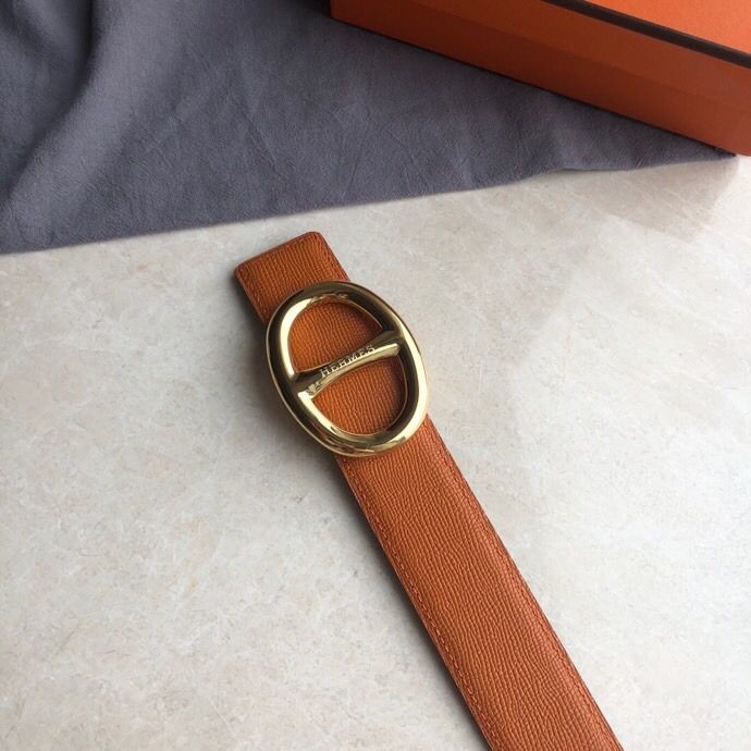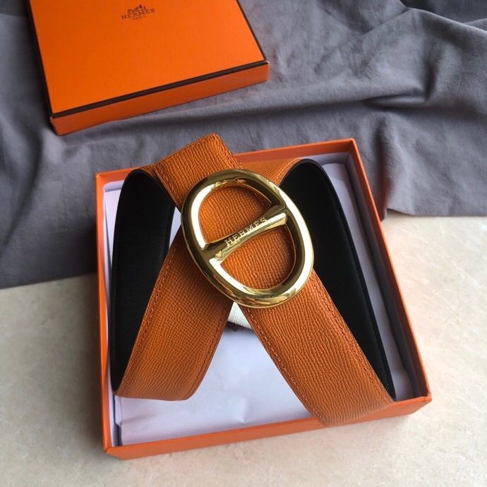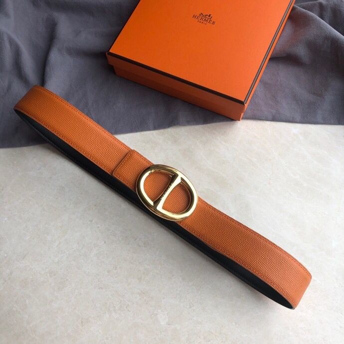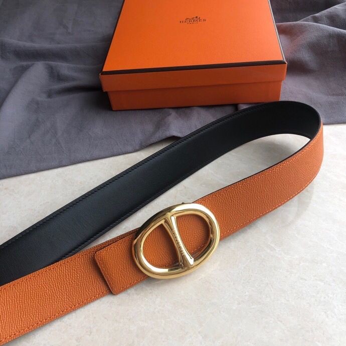 Hermes Stainless steel buckle leather men s 3.8cm belt