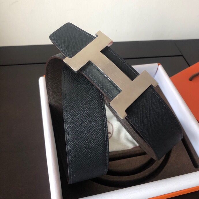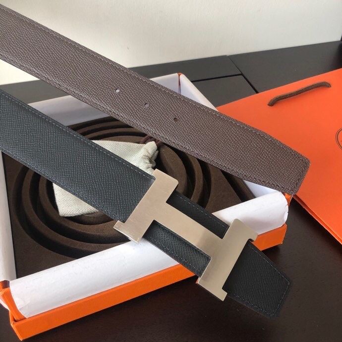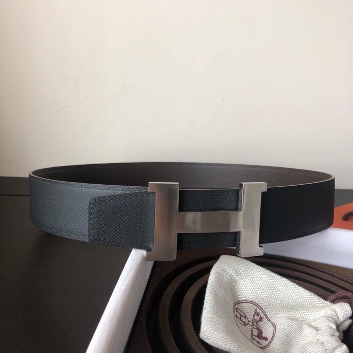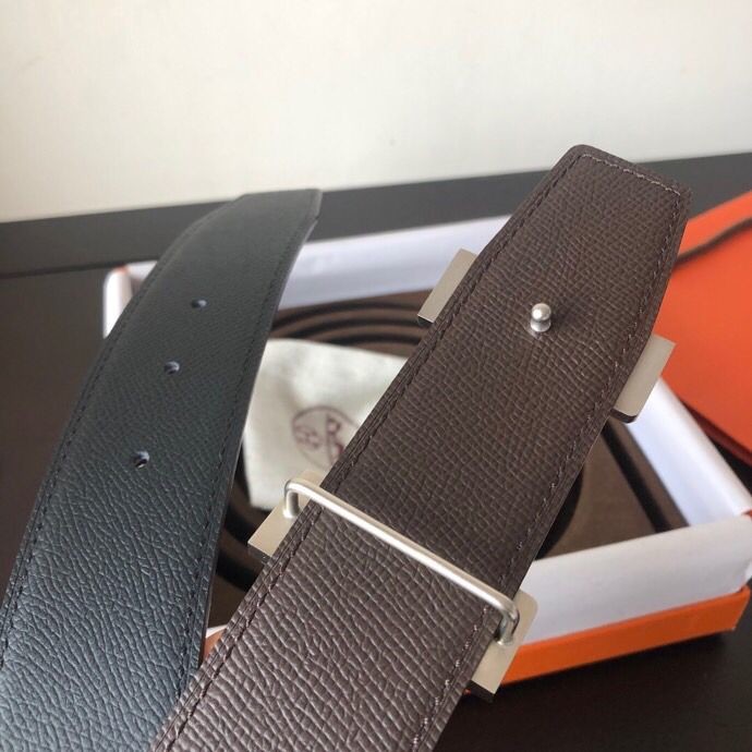 Hermes Stainless steel four-corner metal buckle 38mm Reversible leather belt