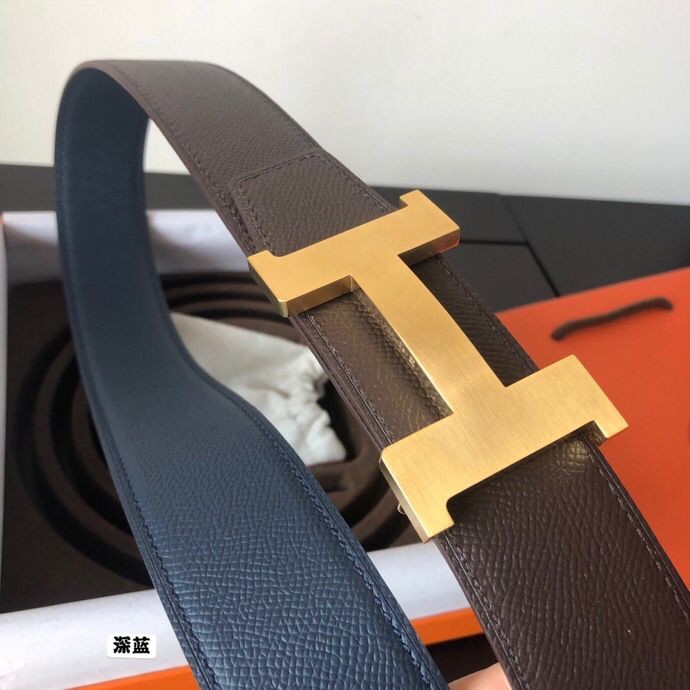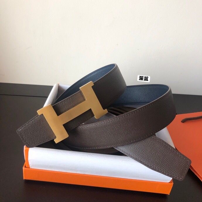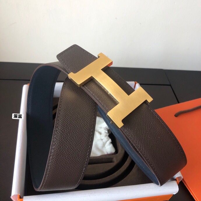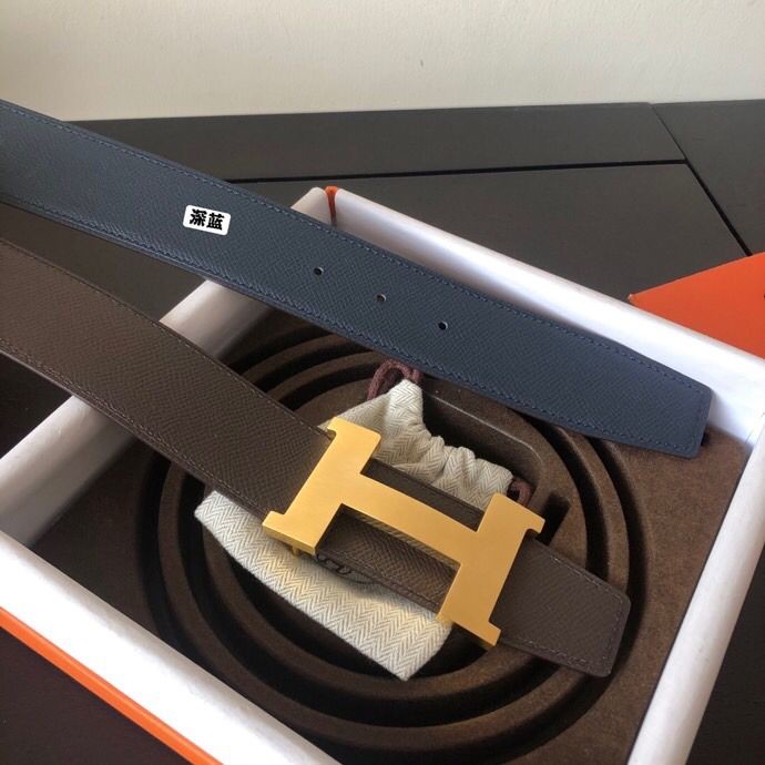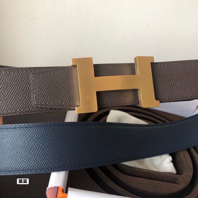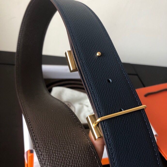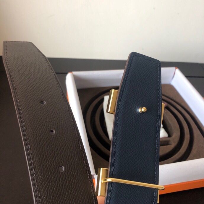Hermes Stainless steel four-corner metal buckle 38mm Reversible leather belt