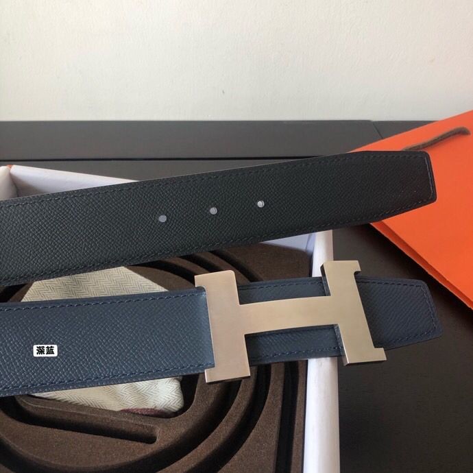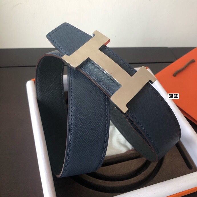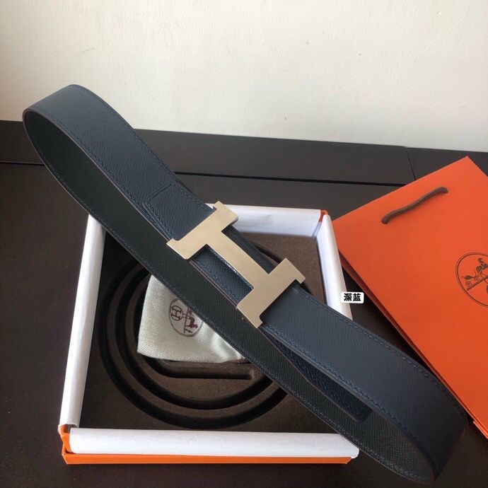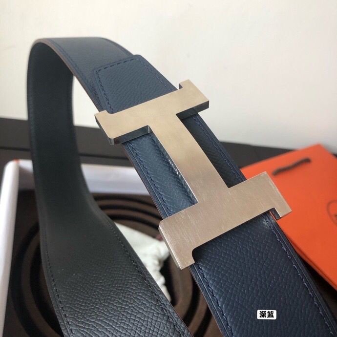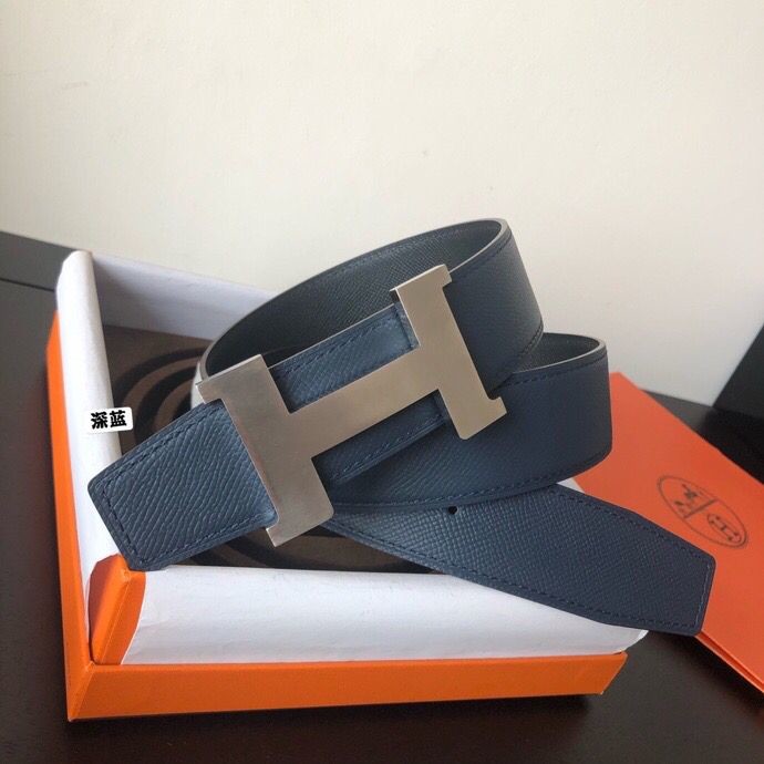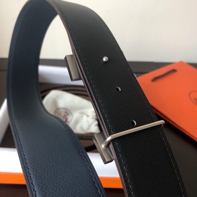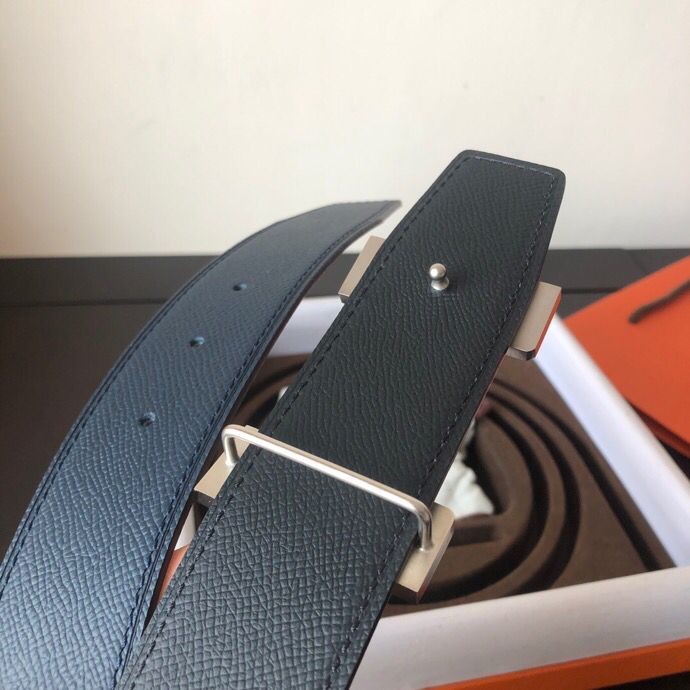 Hermes Stainless steel four-corner metal buckle 38mm Reversible leather belt