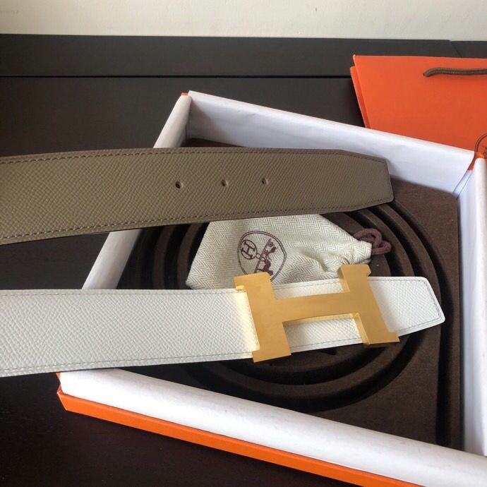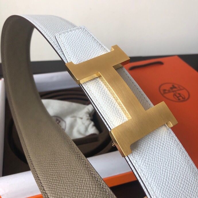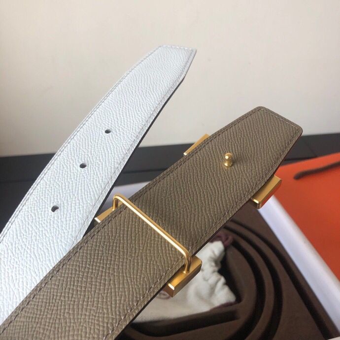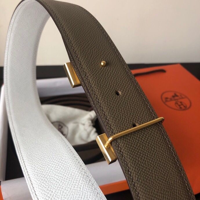Hermes Stainless steel four-corner metal buckle 38mm Reversible leather belt