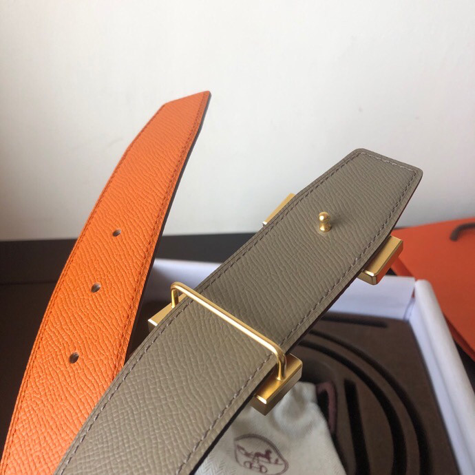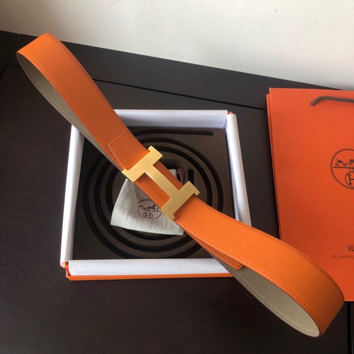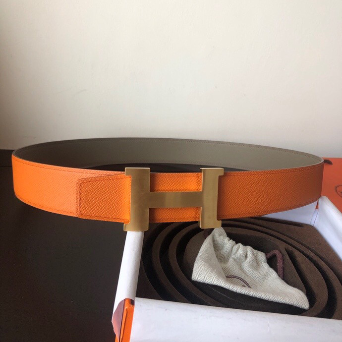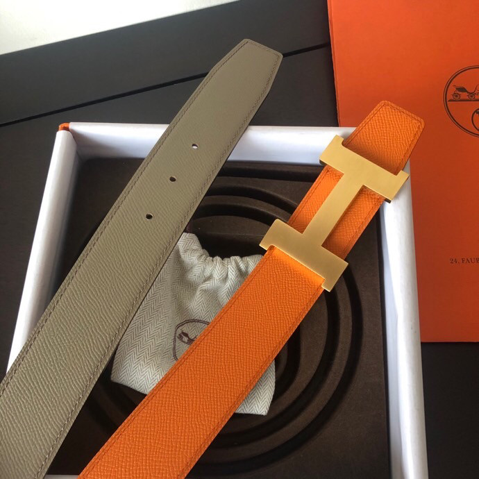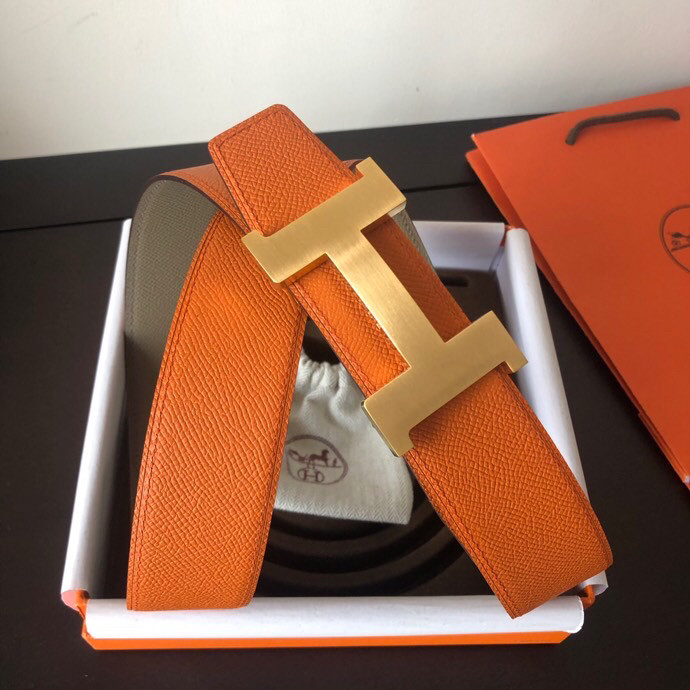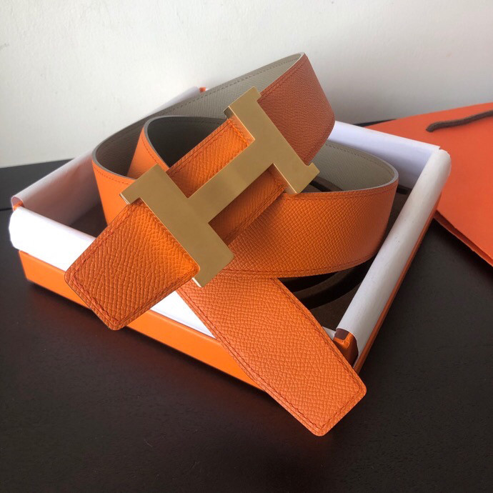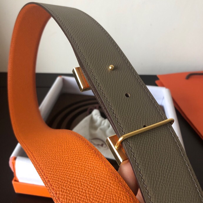 Hermes Stainless steel four-corner metal buckle 38mm Reversible leather belt