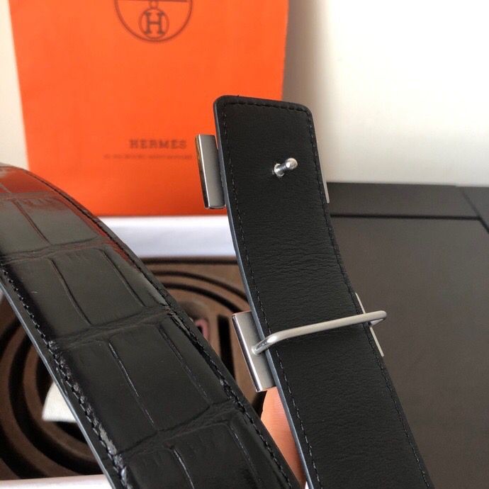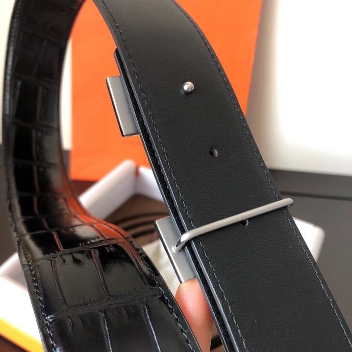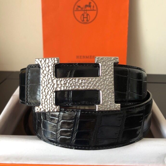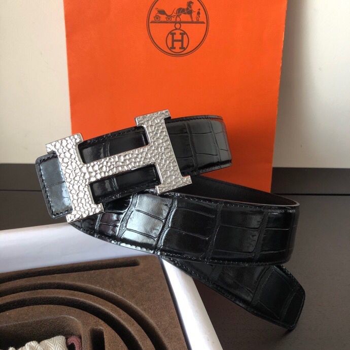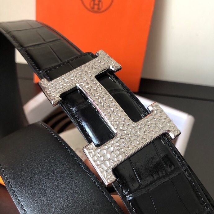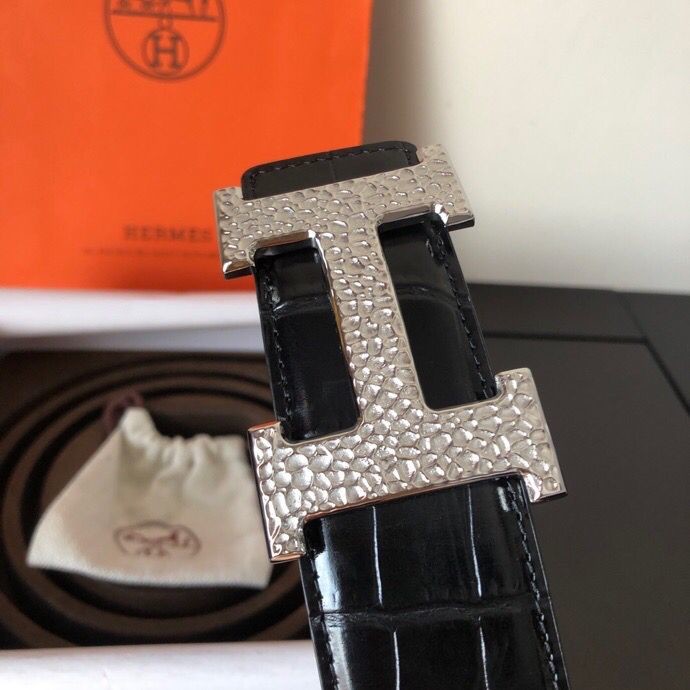 Hermes Stainless steel H metal buckle & cowhide embossed crocodile pattern 38mm belt