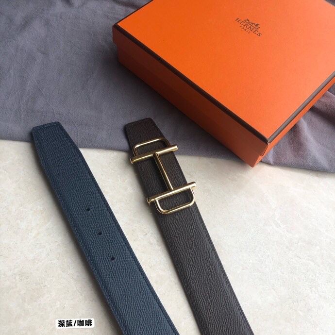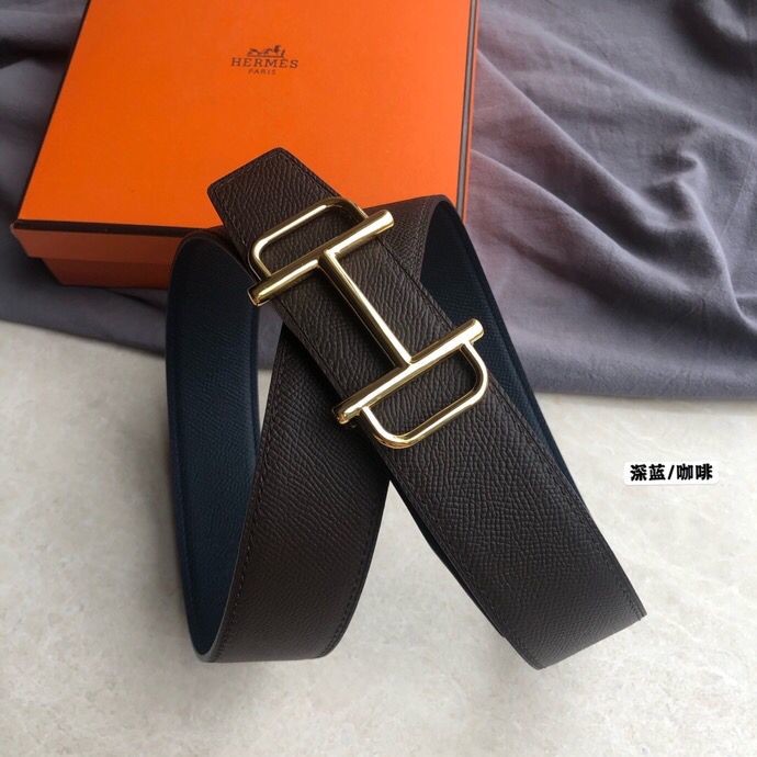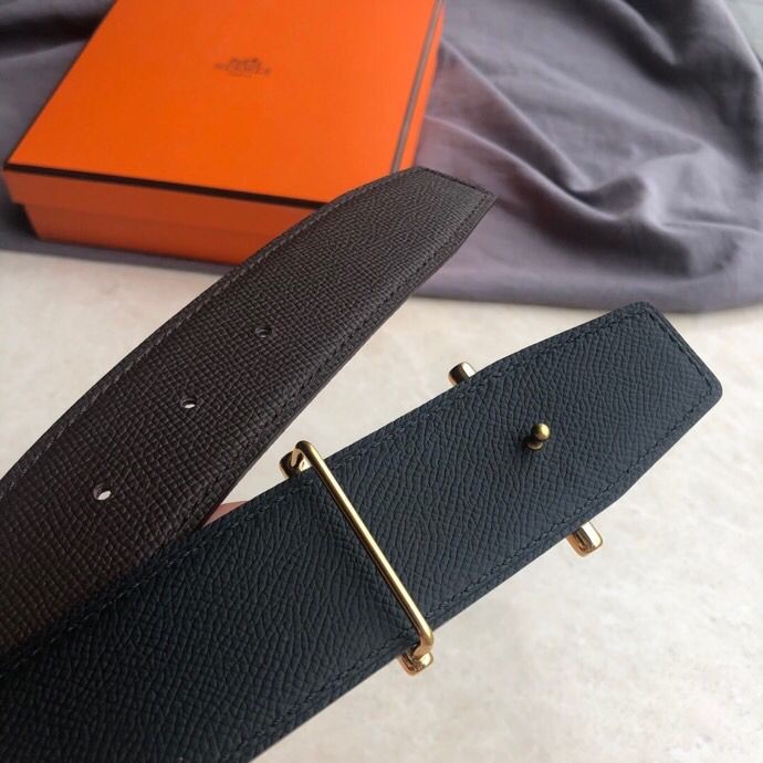 Hermes Men s 3.8cm leather belt with metal buckle and stainless steel