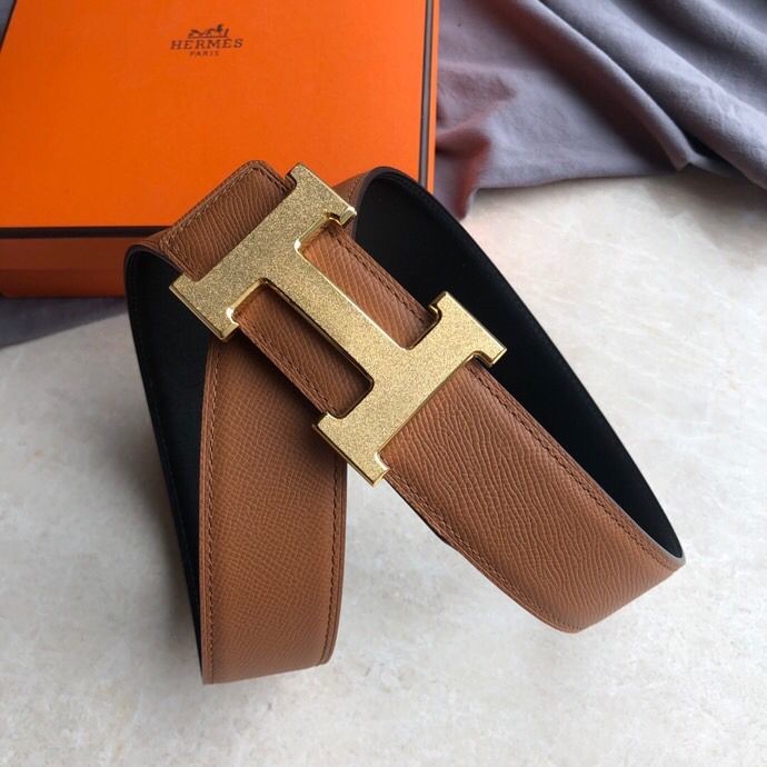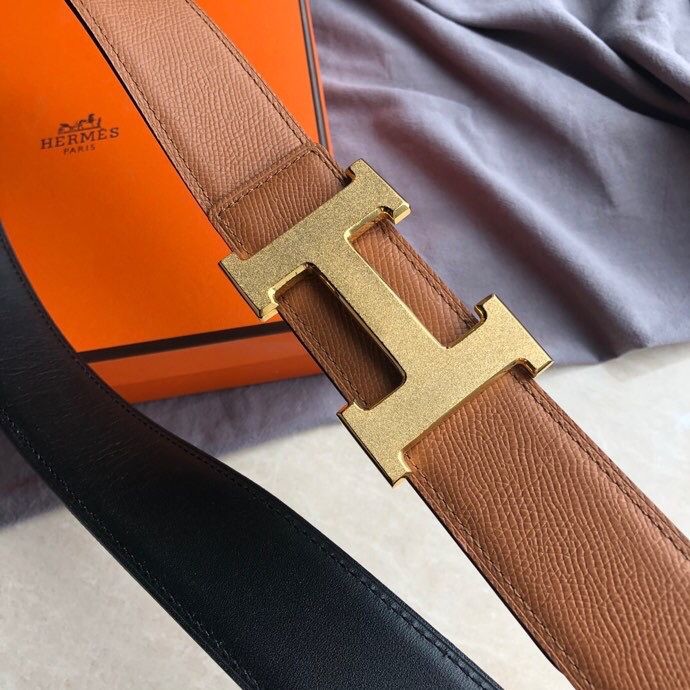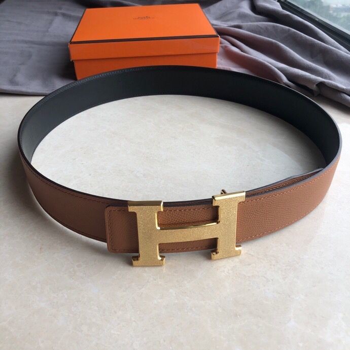 Hermes Men s 3.8cm stainless steel H buckle leather belt
