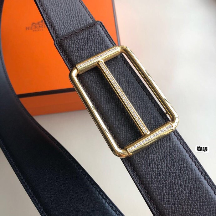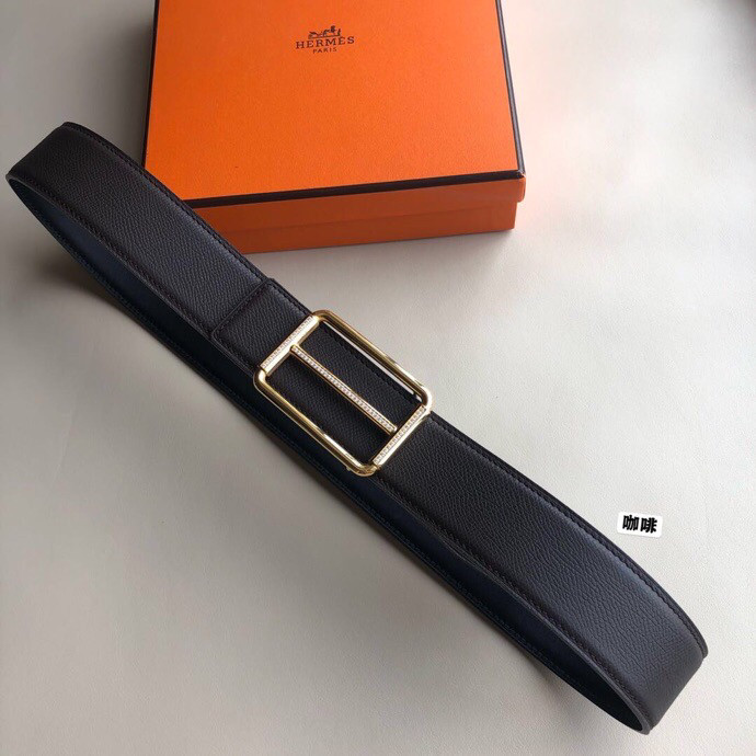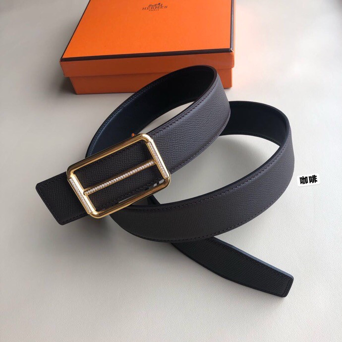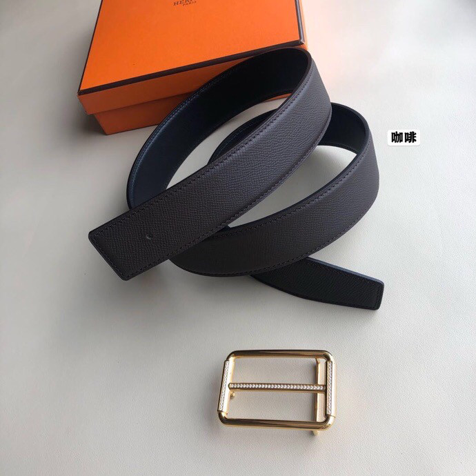 Hermes Stainless steel buckle leather men s 3.8cm belt