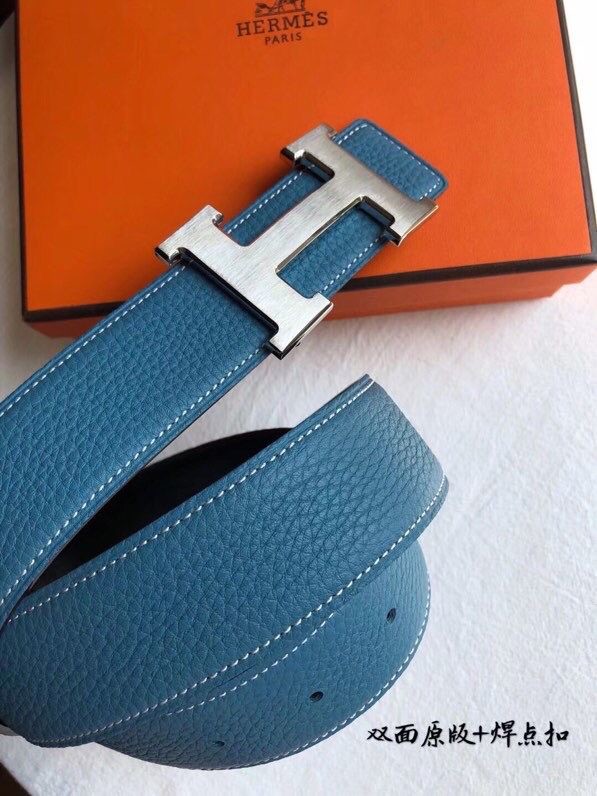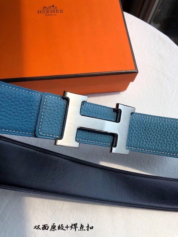 Hermes Stainless steel H pattern metal buckle & cowhide embossed crocodile pattern 38mm belt
