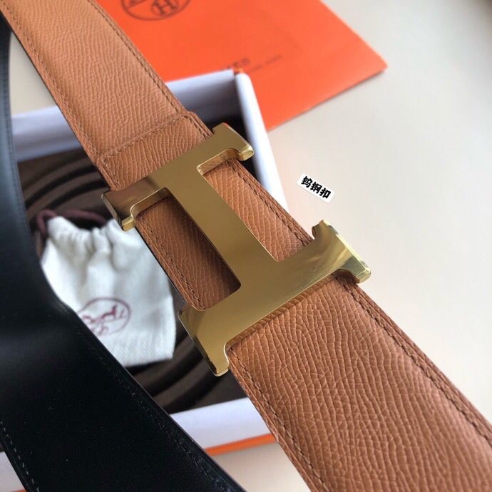 Hermes Men s 3.8cm Tungsten Steel Metal Buckle Leather Belt