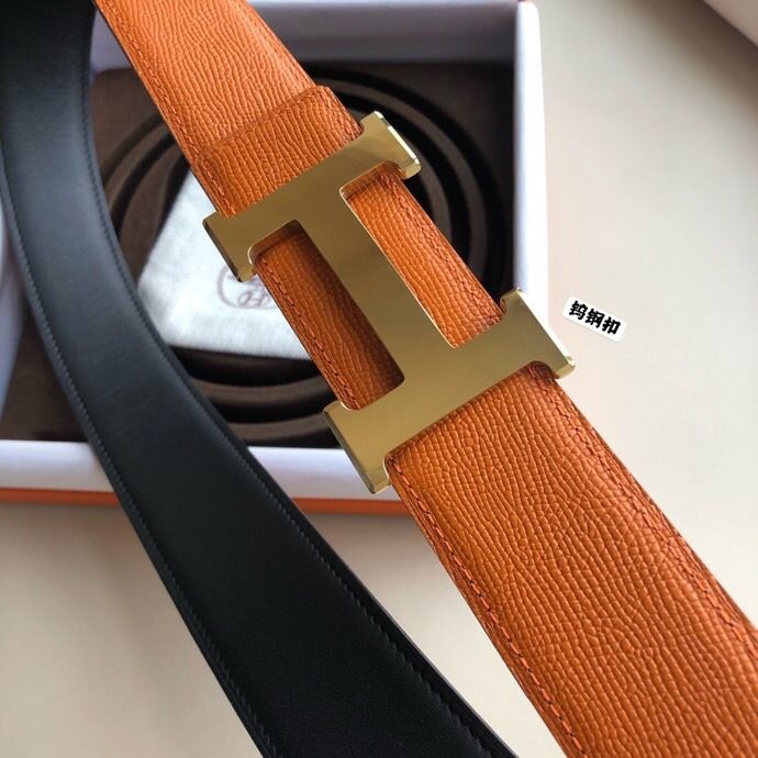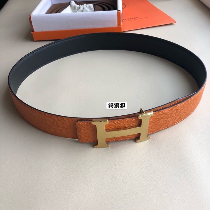 Hermes Men s 3.8cm Tungsten Steel Metal Buckle Leather Belt