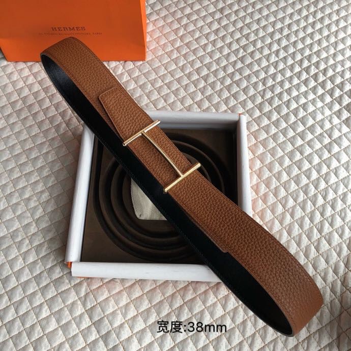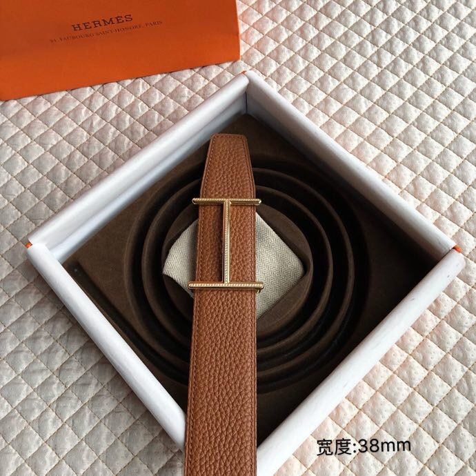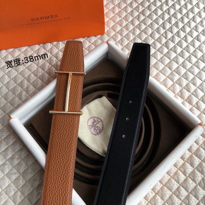 Hermes Stainless steel H pattern metal buckle & cowhide embossed crocodile pattern 38mm belt