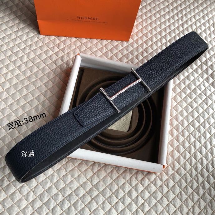 Hermes Stainless steel H pattern metal buckle & cowhide embossed crocodile pattern 38mm belt