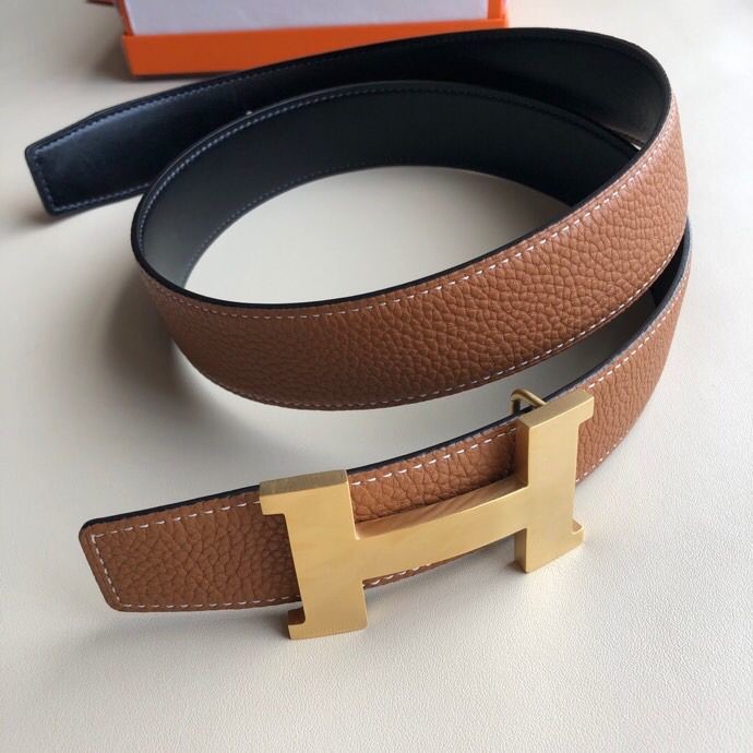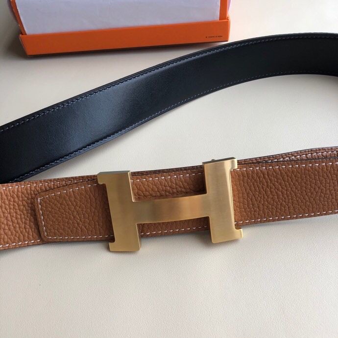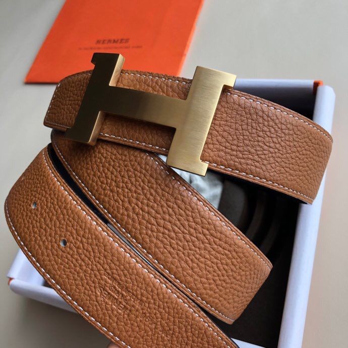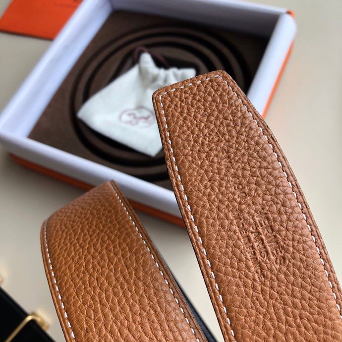 Hermes Stainless steel H pattern metal buckle & cowhide embossed crocodile pattern 38mm belt