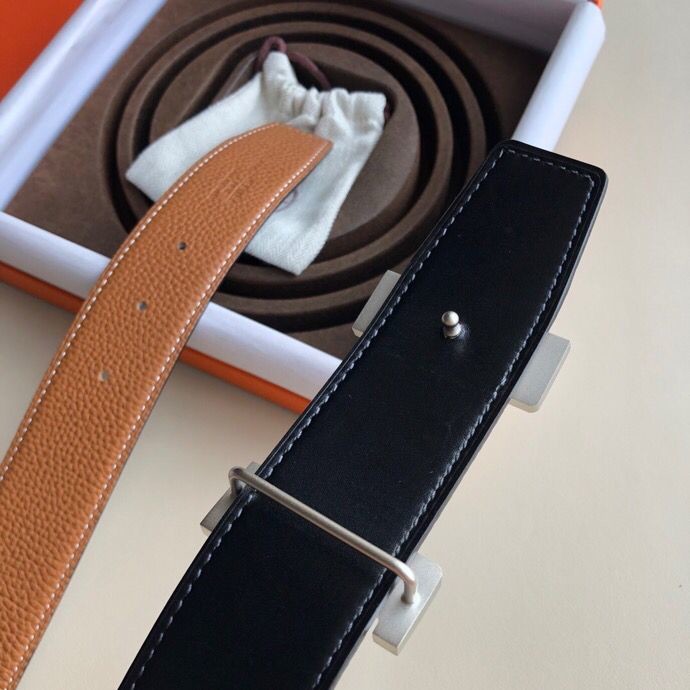Hermes Stainless steel H pattern metal buckle & cowhide embossed crocodile pattern 38mm belt