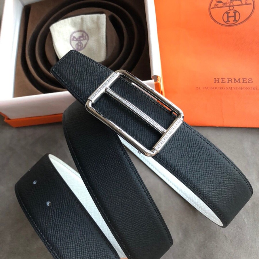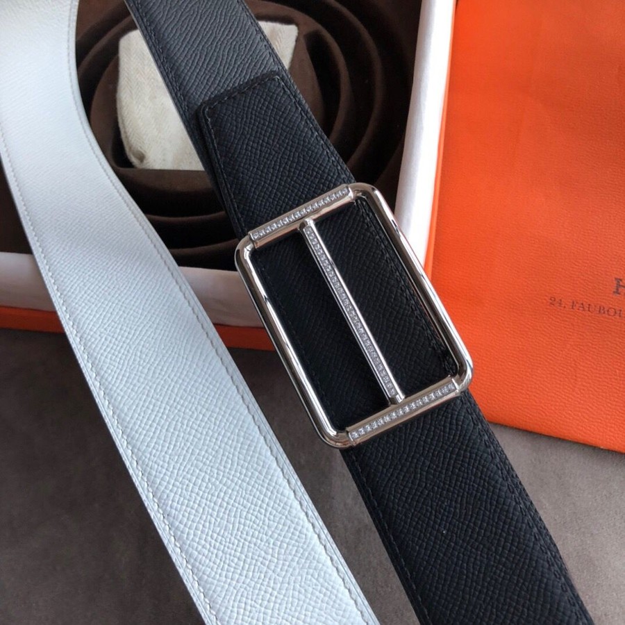 Hermes Stainless Steel Full Rhinestone Reversible Leather Men s 3.8cm Belt