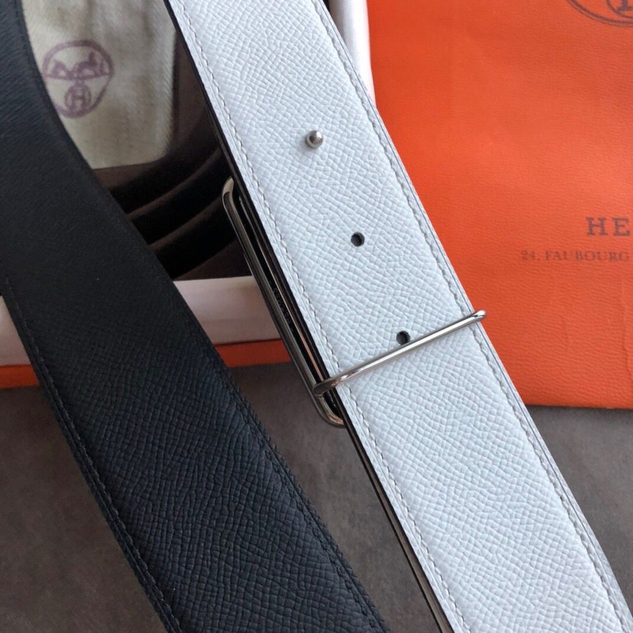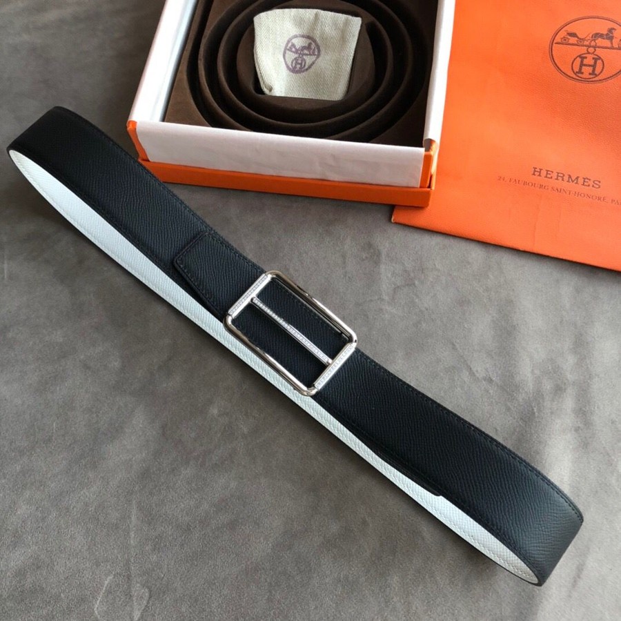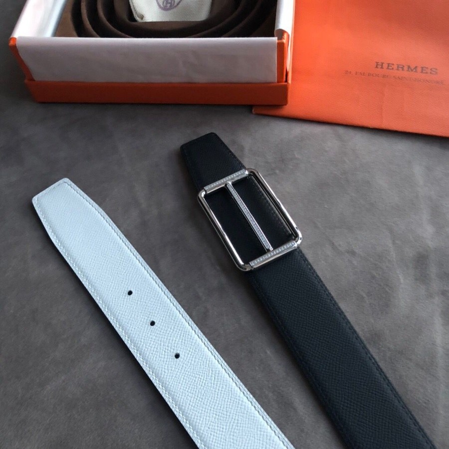 Hermes 38mm Reversible leather belt stainless steel metal buckle belt