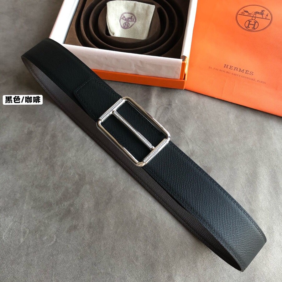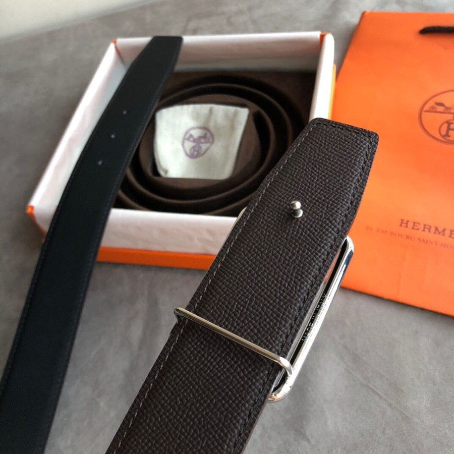 Hermes 38mm Reversible leather belt stainless steel metal buckle belt