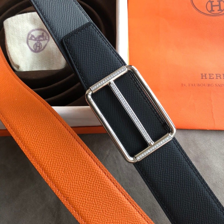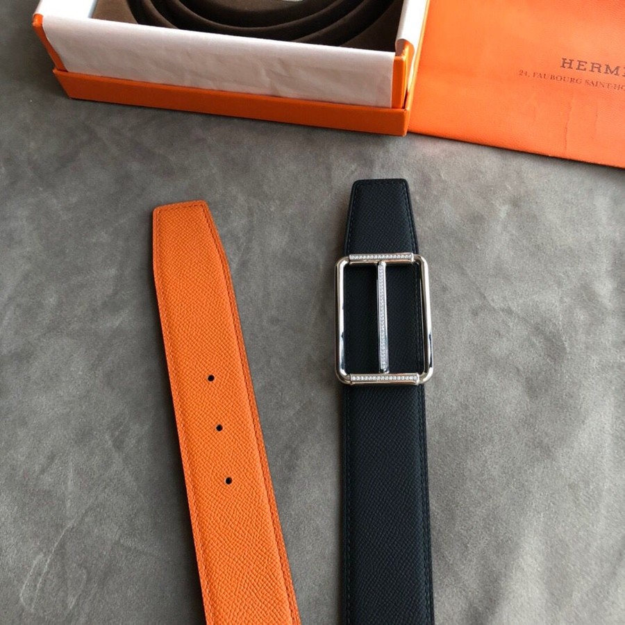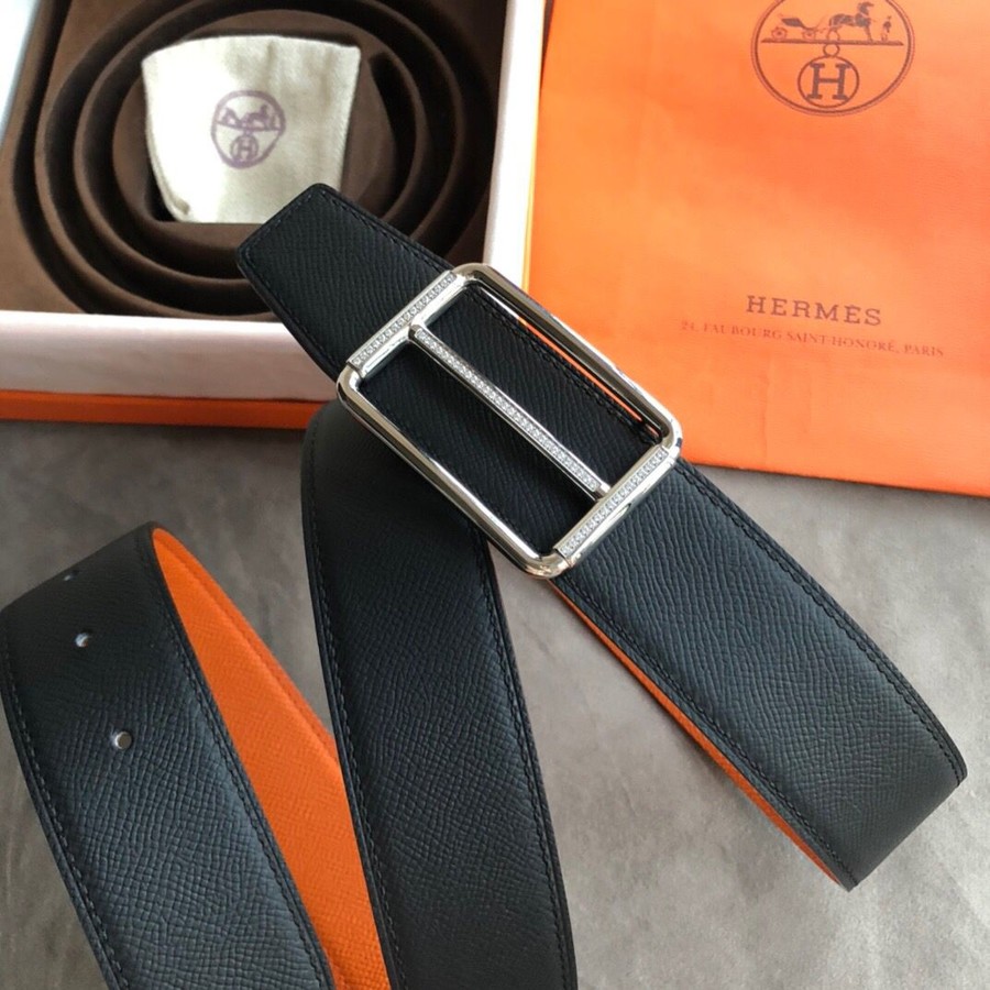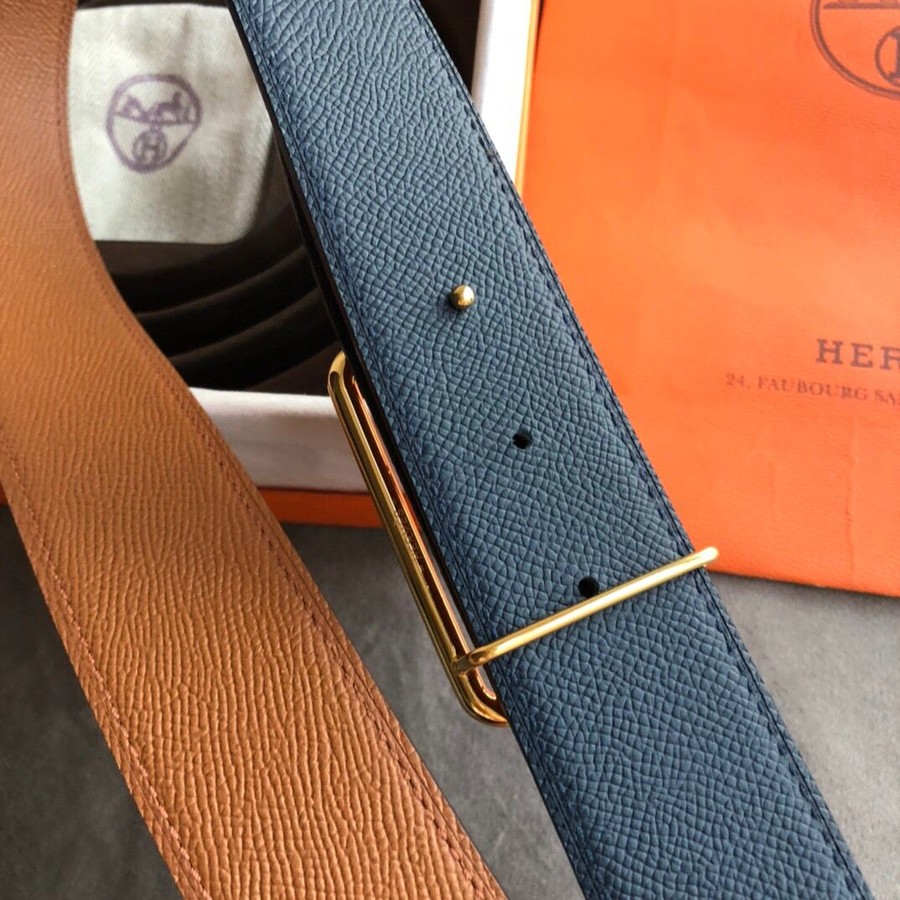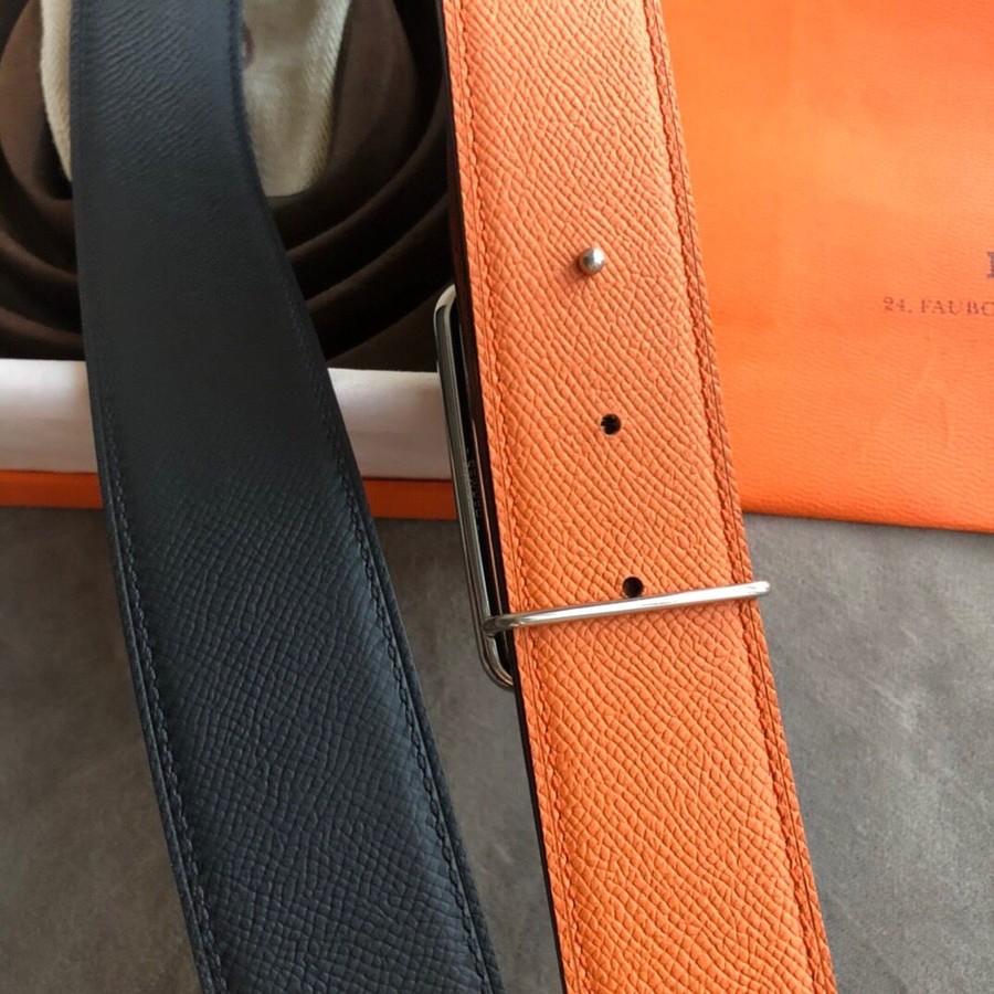 Hermes 38mm Reversible leather belt stainless steel metal buckle belt