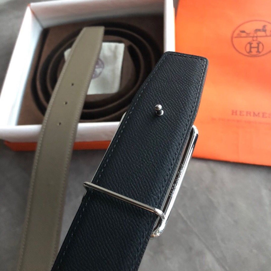 Hermes 38mm Reversible leather belt stainless steel metal buckle belt