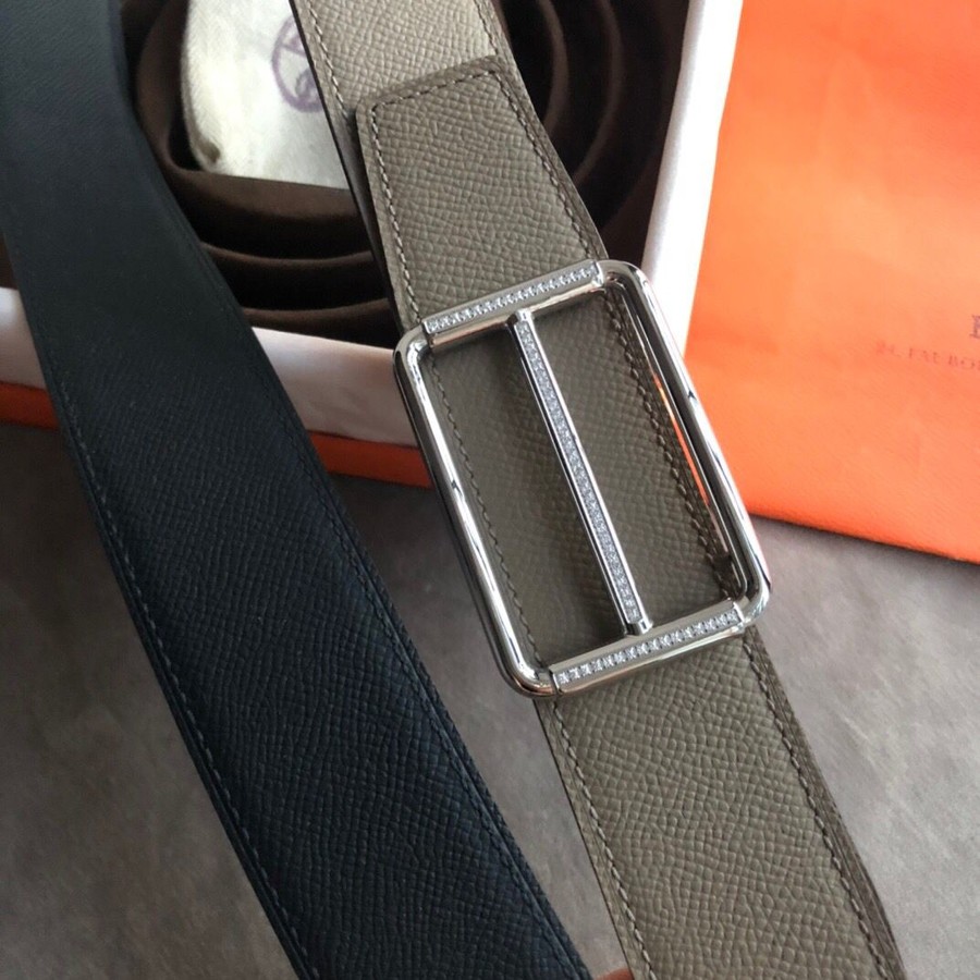 Hermes Stainless Steel Full Rhinestone Reversible Leather Men s 3.8cm Belt