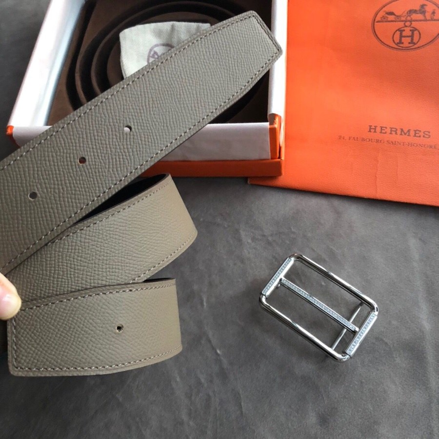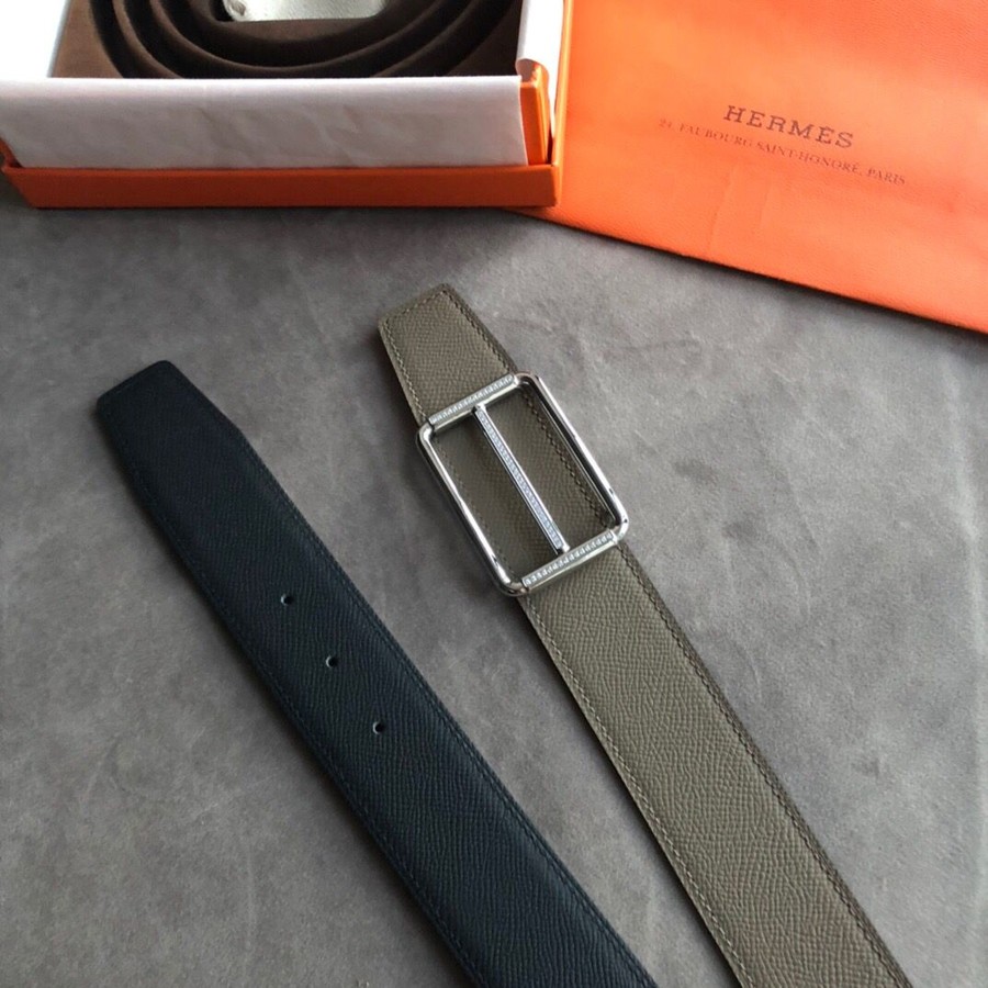 Hermes 38mm Reversible leather belt stainless steel metal buckle belt