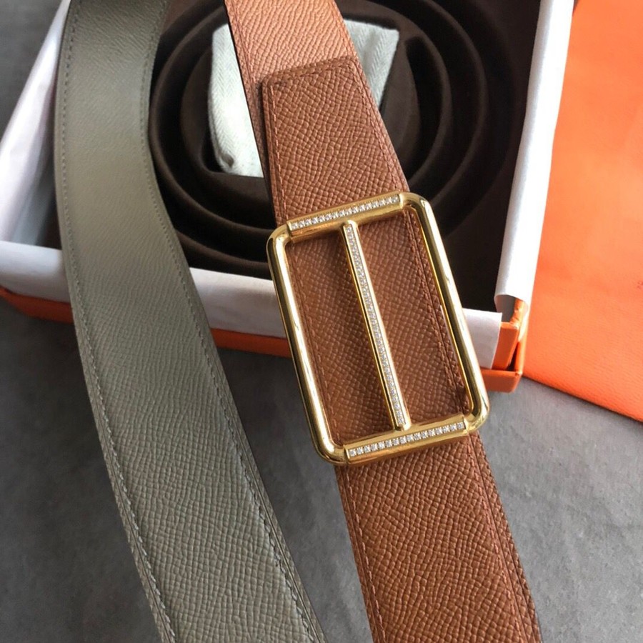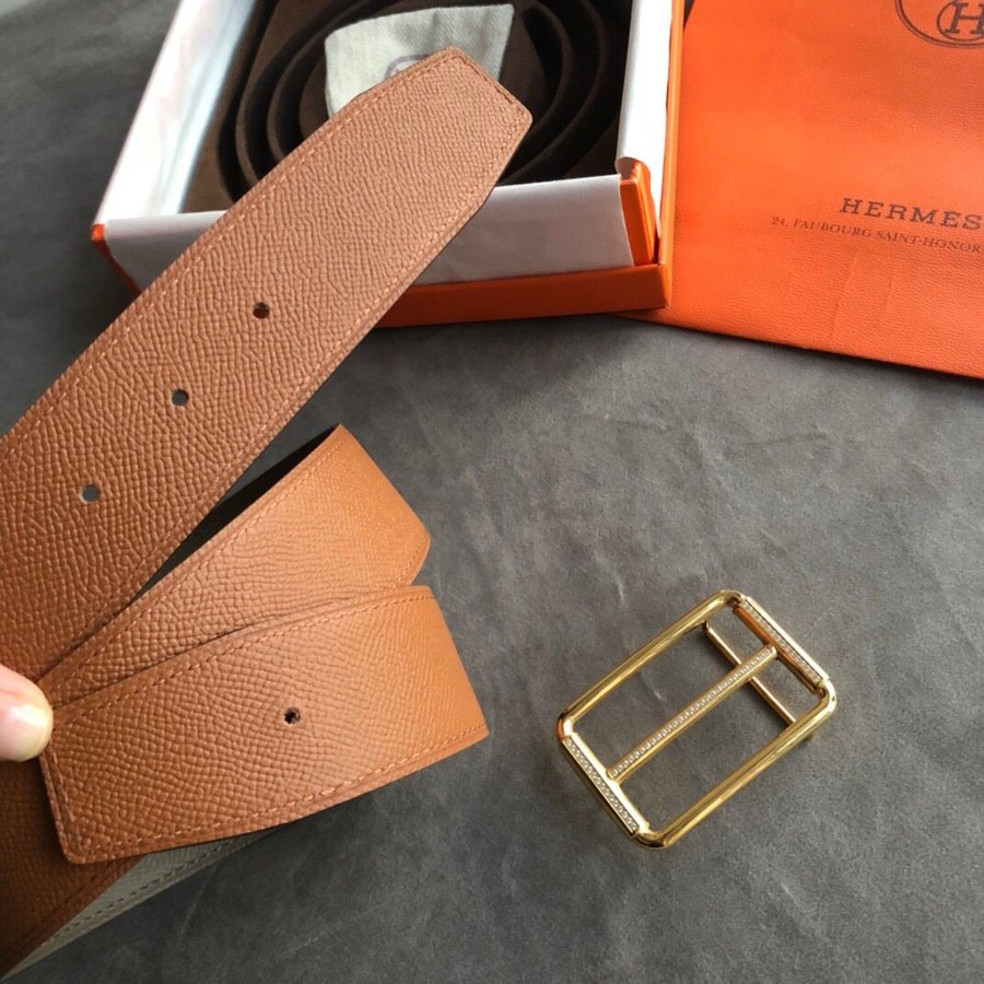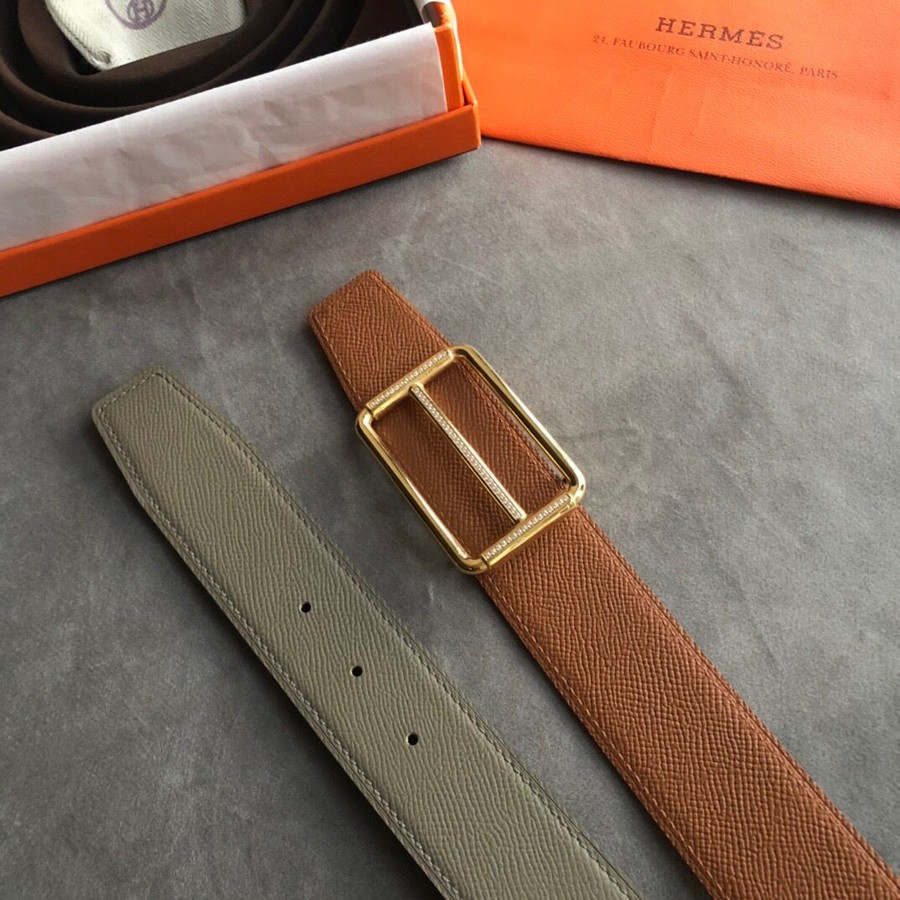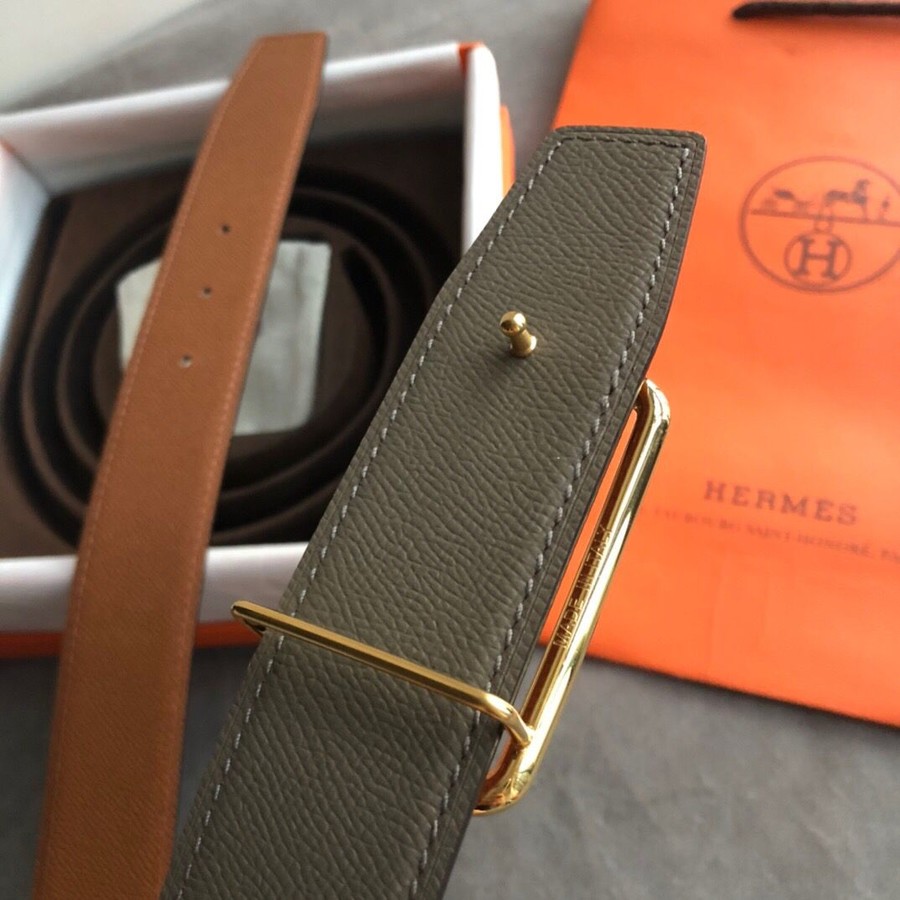 Hermes 38mm Reversible leather belt stainless steel metal buckle belt