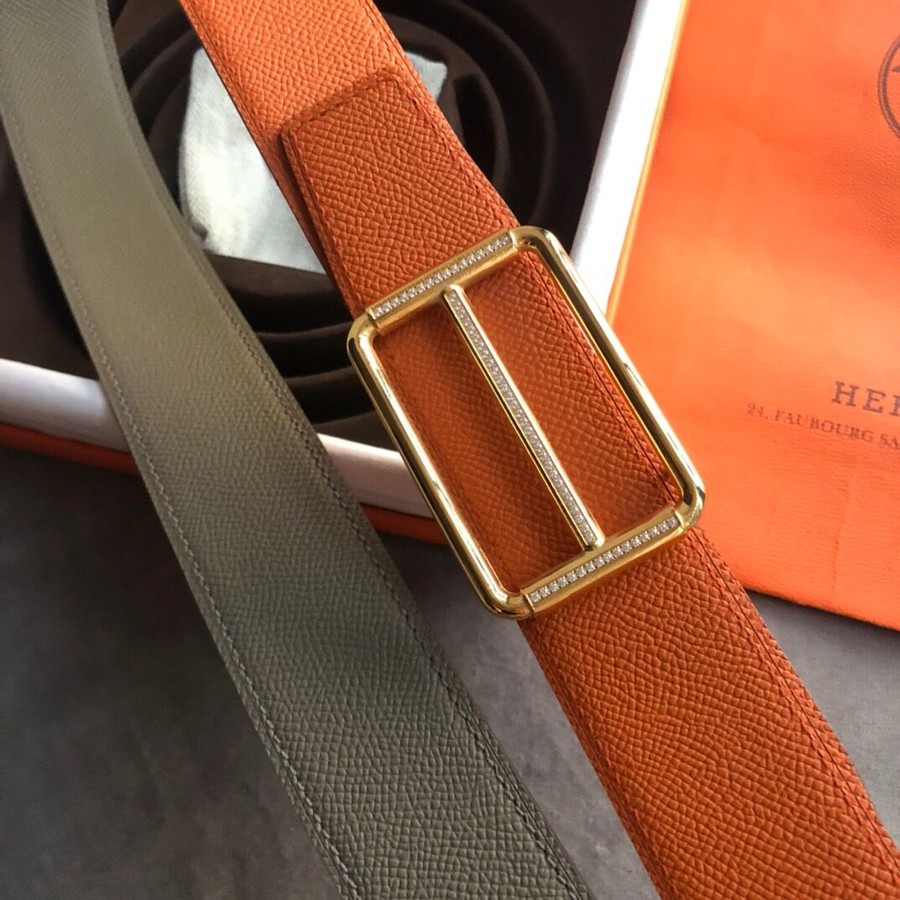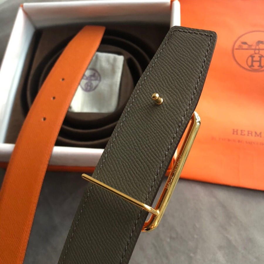 Hermes 38mm Reversible leather belt stainless steel metal buckle belt