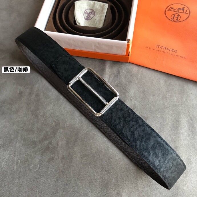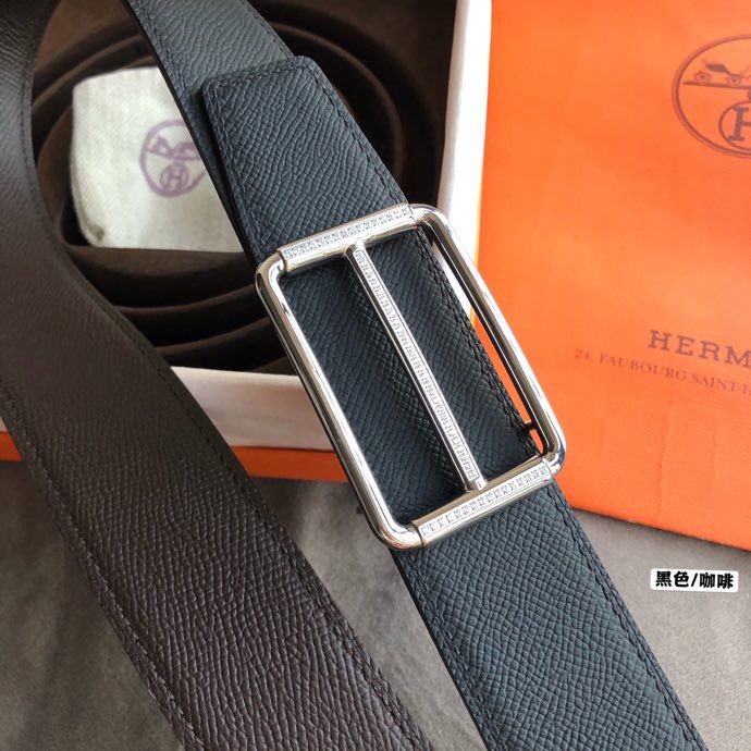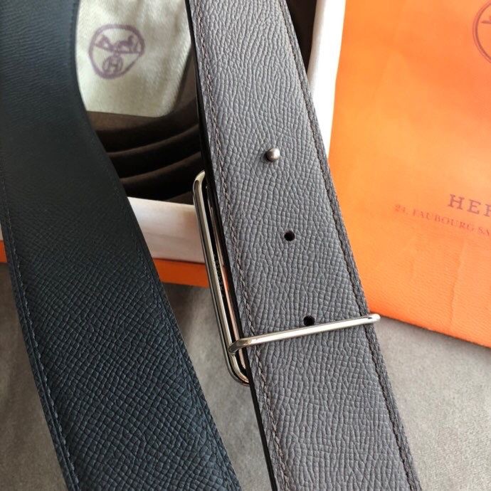 Hermes 38mm Reversible leather belt with stainless steel metal buckle