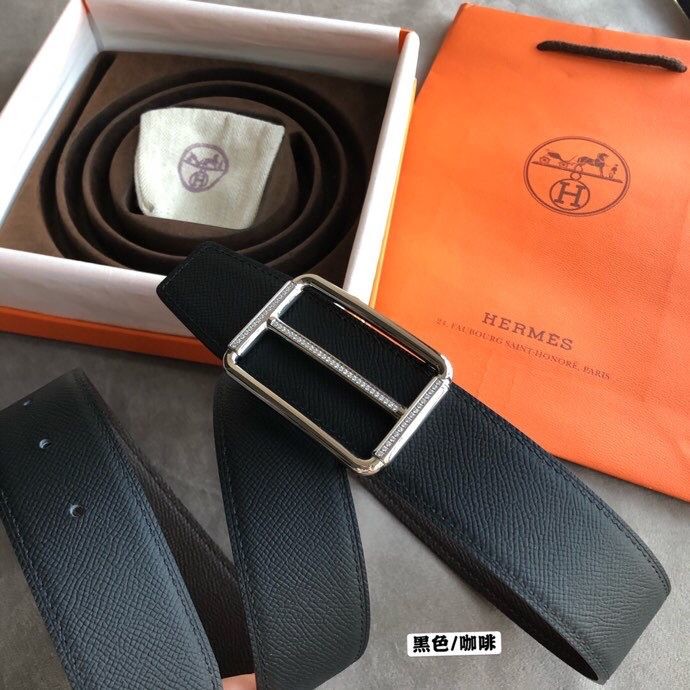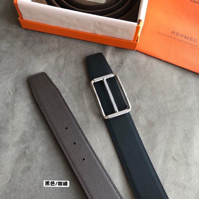 Hermes Stainless Steel Full Rhinestone Reversible Leather Men s 3.8cm Belt